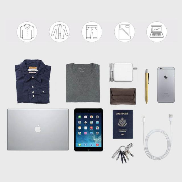 ビジネスリュックの外側表面にペン、携帯、証明書、財布などの小物を収納するための収納ポケットが設けられます。手帳、財布、タオル、着替え、必要な物は、全部このバッグの中に納まってします!