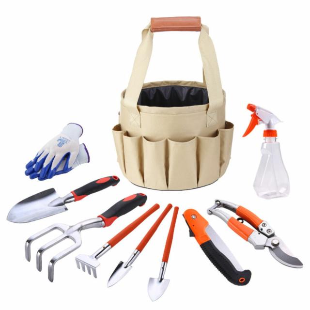 収納トートバッグ付きで10点セット園芸用品、持ち運び便利。庭を楽しむ園芸用品、ガーデニングマスターツールセット!