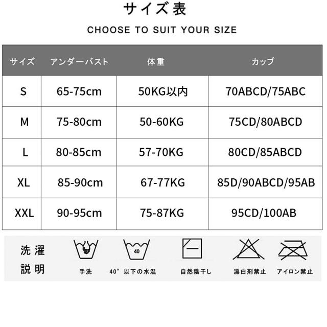 XL :アンダーバスト85-90cm 67-77KG カップ 85D,90ABCD,95AB