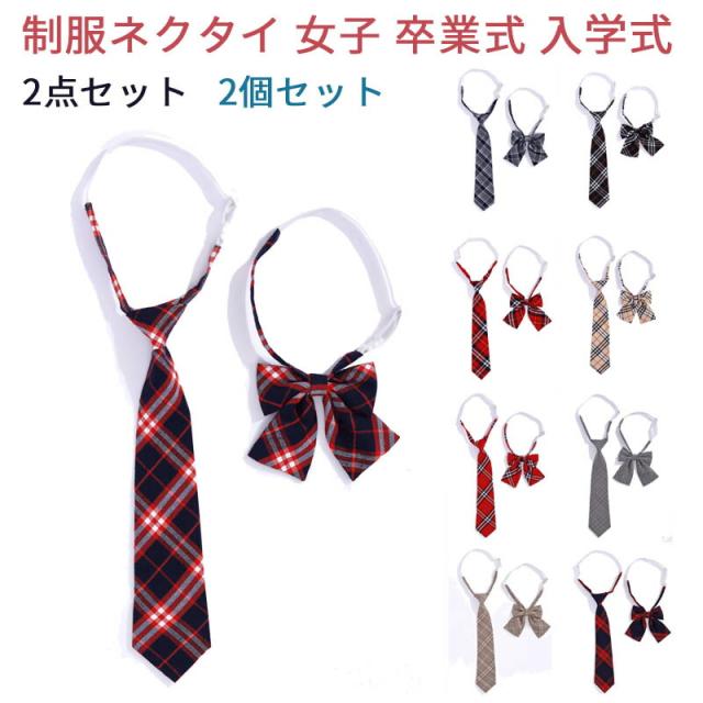 【2個セット】制服リボン 制服 リボン りぼん 制服りぼん スクールリボン 制服ネクタイ 2点セット 女子 高校生 簡単 学生服 卒業式 入学式 発表会 学園祭 コスプレ チェック レディース ハロウィン コスプレ プレゼント ギフト 2個セット
