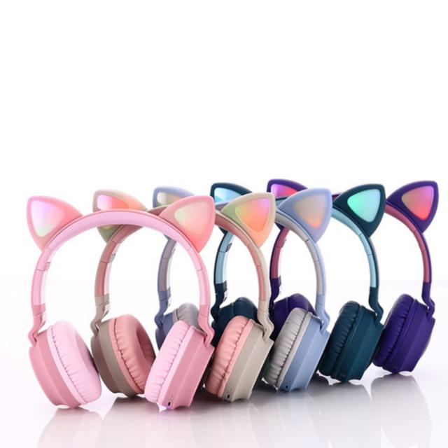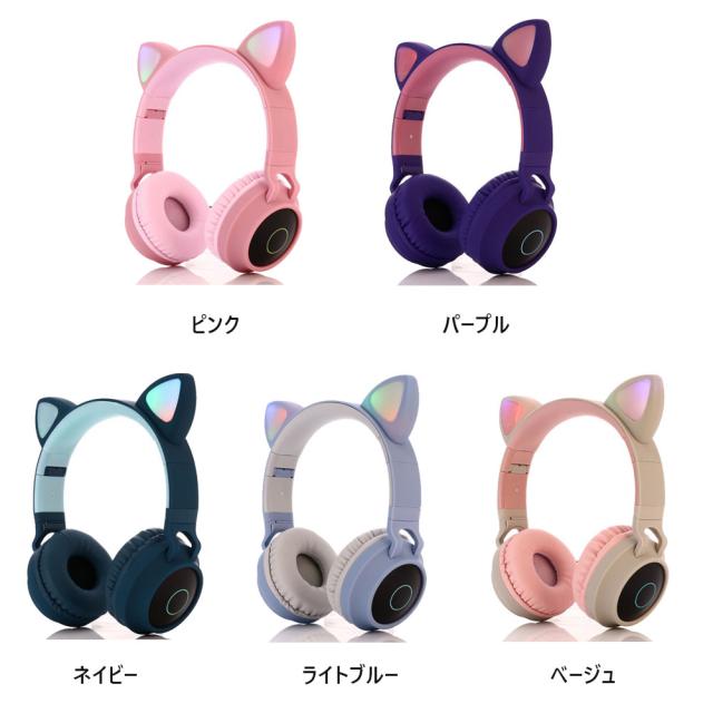 猫耳ヘッドホン ヘッドホン Bluetooth5.0 LED付き ワイヤレス マイク内蔵 折り畳み式 音量制御 聴力保護 コンパクト 柔軟 かわいい iPhone/iPad/スマホ/ノートパソコン に対応6色選択