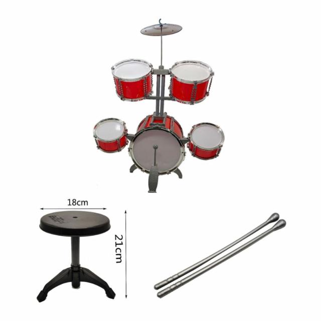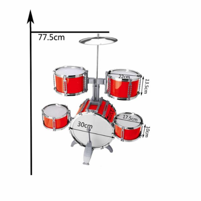 1バスドラム、4つの小さなドラム、1シンバル、2ドラムスティック、1フットペダルと1スツールを含みます。