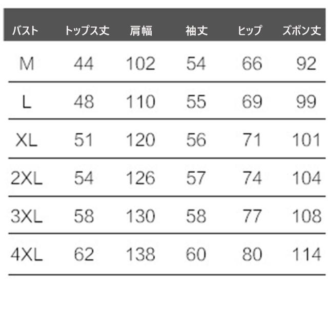 バスト/トップス丈/肩幅/袖丈/ヒップ/ズボン丈(cm)