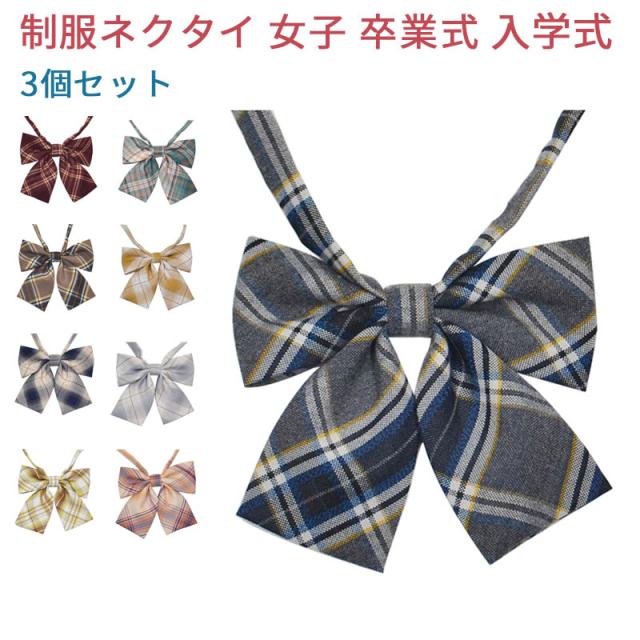 制服リボン 制服 リボン りぼん 制服りぼん スクールリボン 女子 高校生 簡単 学生服 卒業式 入学式 発表会 学園祭 コスプレ チェック レディース ハロウィン コスプレ プレゼント ギフト 3個セット