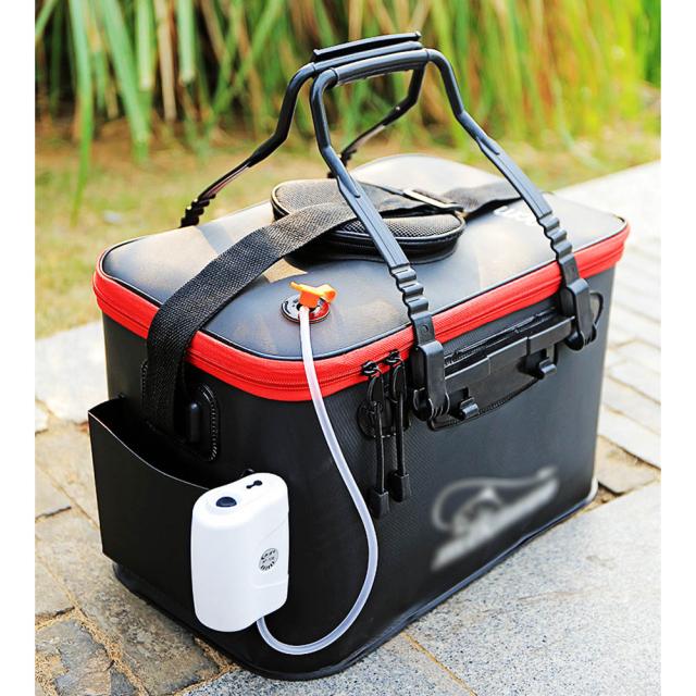 【優れたデザイン性】メッシュのふたは魚のために新鮮な空気を持ち、魚を長く生き続ける また、エアーポンプ装着口ポケットがサイドに付いています。 エアーポンプを置くことができます。屋外の釣りに大変役に立ちます。