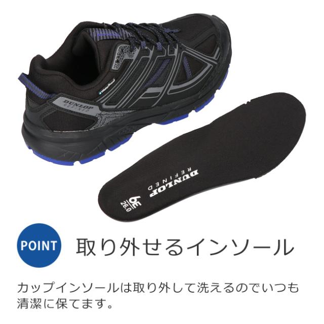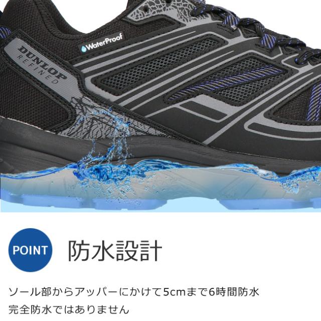 ダンロップ リファインド スニーカー メンズ 防水 黒 6E 幅広 軽量 防滑 M2005WP ジョギング ウォーキング 雨 シューズ 靴