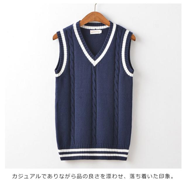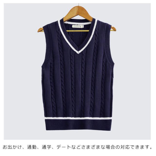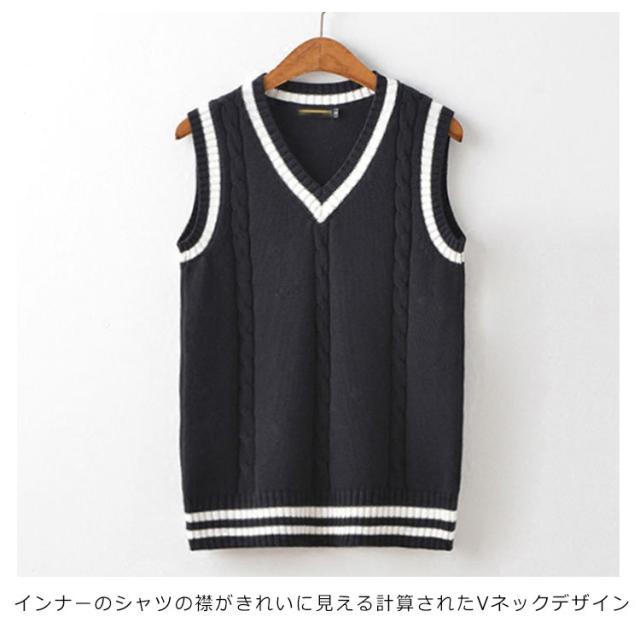 ニットベスト メンズ Vネック トップス ケーブル編み プルオーバー ベスト 大きいサイズ 秋冬 スクール風 高校生 入学式 通学 カジュアル シンプル