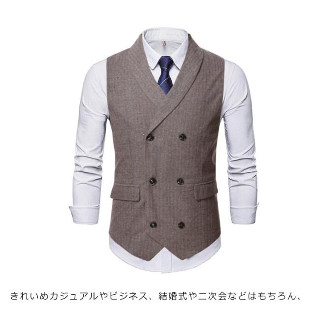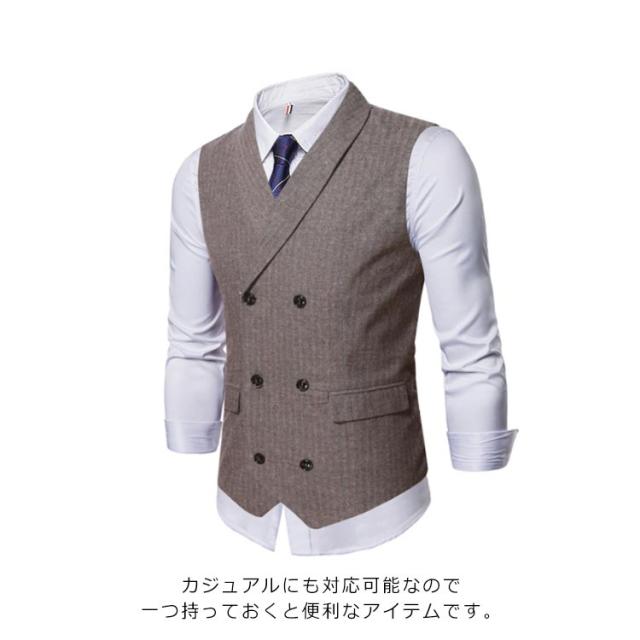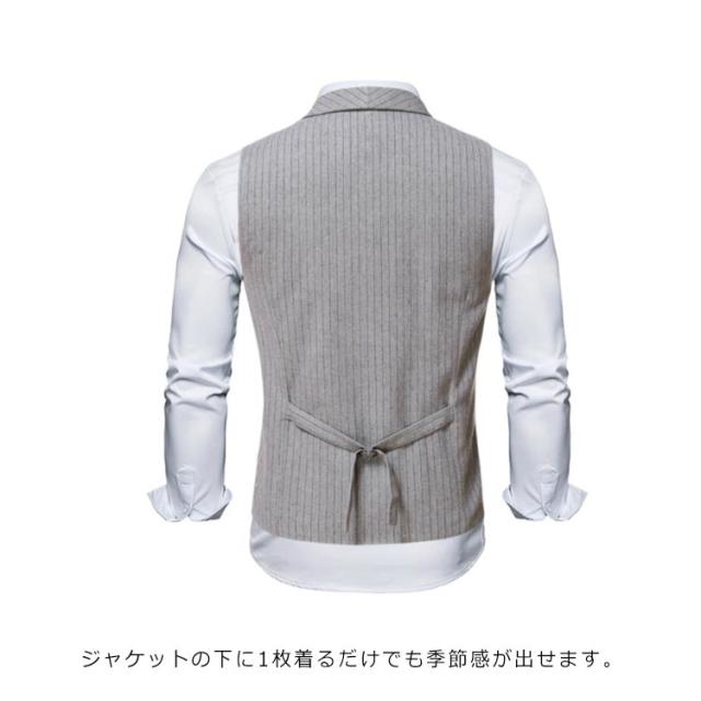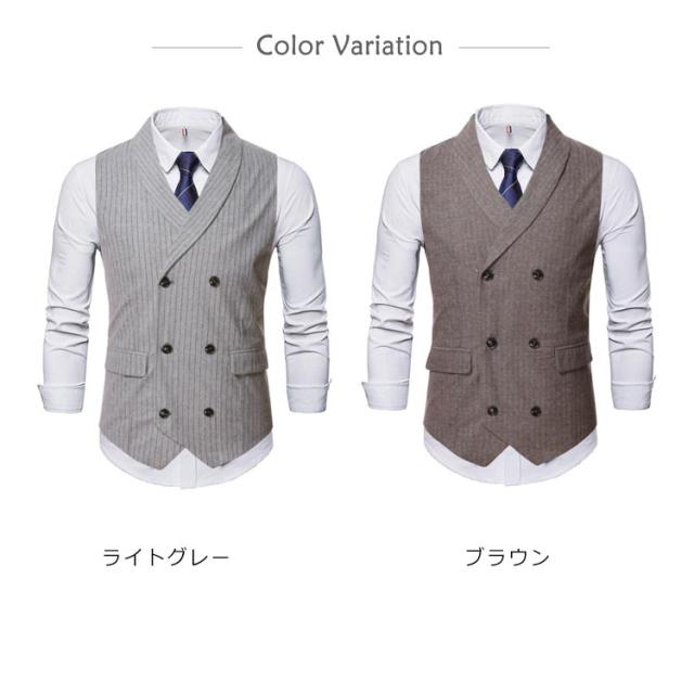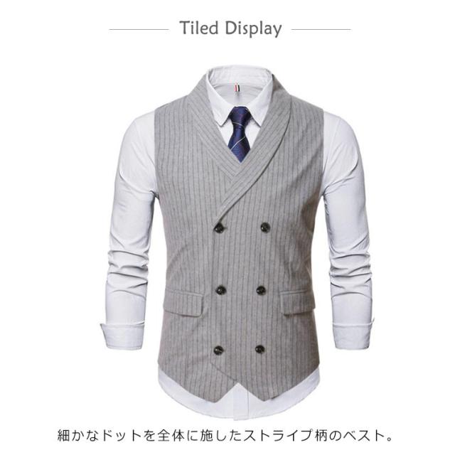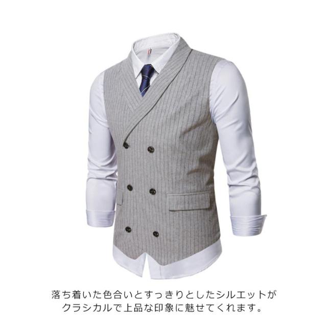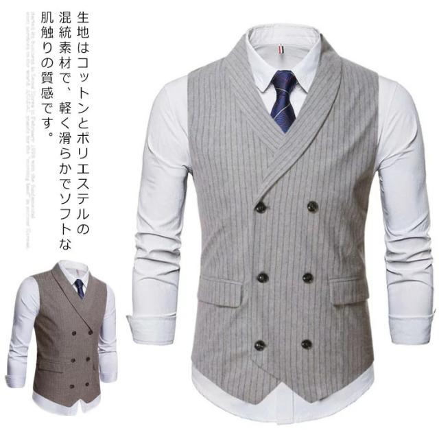 ベスト メンズ 春夏 ジレベスト ストライプ柄 ベスト 襟付き ダブル紐 ジレ ビジネス フォーム シンプル 飲食店 制服 キレイ目 ビジネス