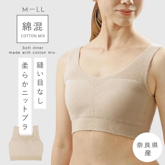 奈良県産、やわらかニットインナーシリーズのニットブラ。