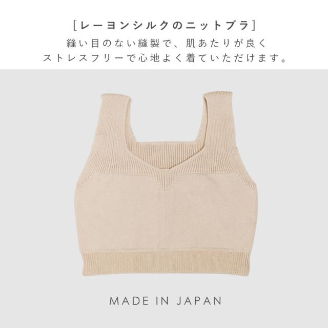 ブラジャー,ブラ,ノンワイヤーブラ,タンクトップブラ,ノンワイヤー,ホックなし,ソフトブラ,ナイトブラ,リラックスブラ,スポーツブラ,かぶる,下着,ニット,レーヨン,シルク,シルク混,縫い目なし,無縫製,ソフト,ストレッチ,伸びる,動きやすい,履きやすい,締め付けない,しめつけない,締めつけない,ストレスフリー,楽ちん,ベージュ,日本製,シンプル,カジュアル,やわらかい,柔らかい,ソフト,肌触り,ソフトタッチ,快適,心地よい,ベーシック,定番,ヘビロテ,普段使い,デイリーユース,おすすめ,オススメ,素材,生地,気持ちいい,大人,大人用,レディース,女性,女性用,M,L,LL
