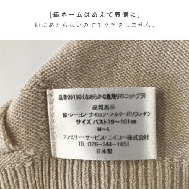 肌にあたらないように織ネームはあえて表側につけております。