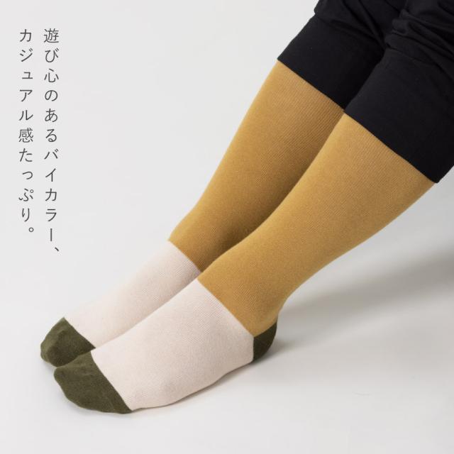 遊び心のあるバイカラーで、カジュアル感たっぷりのソックス。