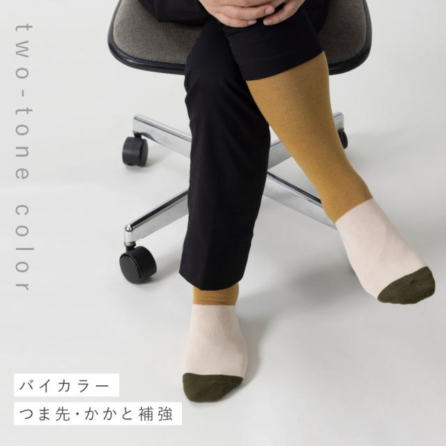 メンズ用丈長サイズ、バイカラーがポイントのカジュアルソックス。使い勝手良い丈長サイズにメンズタイプが登場!