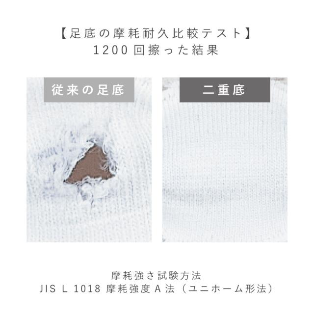 傷みやすい足底を補強!サポートタイプでスクールにもおすすめのソックス。足底全体に糸を1本多く補強した丈夫なソックス。足底の摩耗耐久比較テスト(摩耗強さ試験方法 JIS L 1018 摩耗強度A法(ユニホーム形法))で実験された丈夫な足底です。