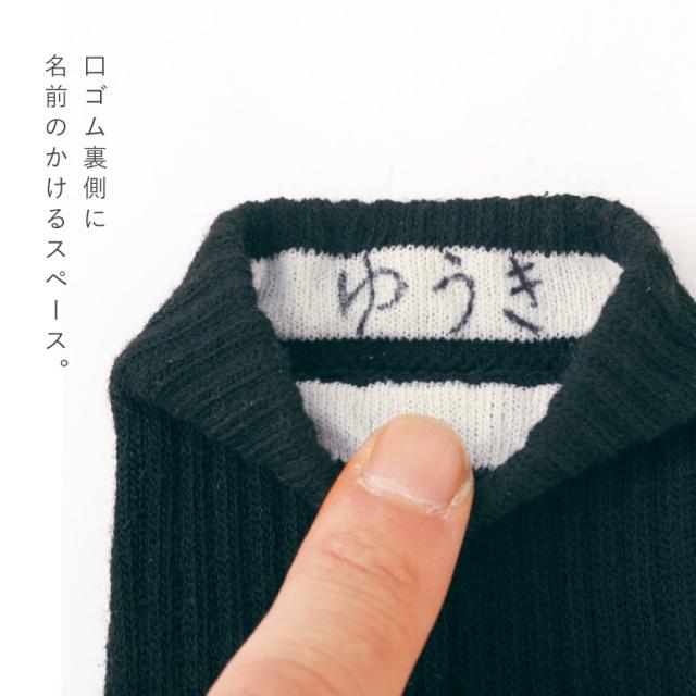 口ゴム裏側に名前のかけるスペースがあるのも便利。