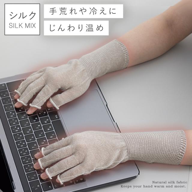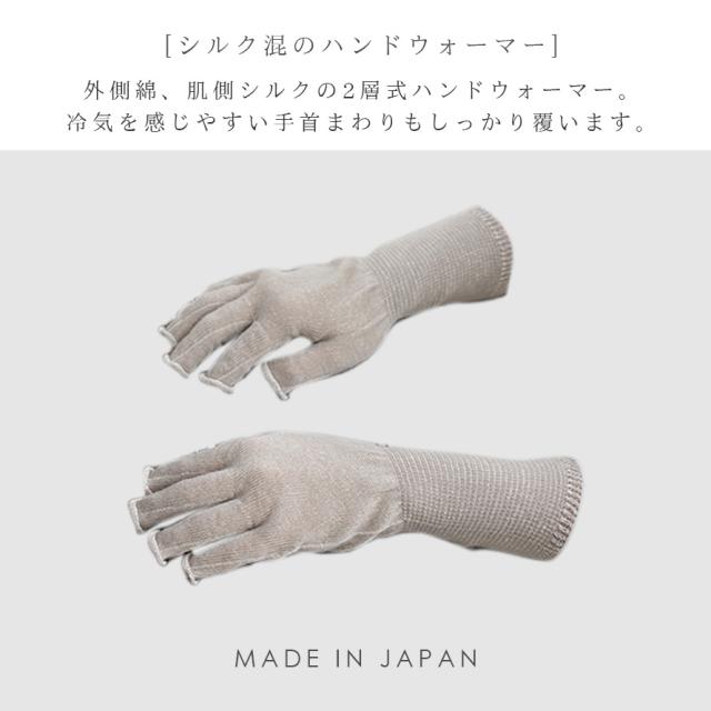 ハンドウォーマー アームウォーマー 手袋 シルク 指なし 手首 冷え対策 手肌にやさしいシルク混ハンドウォーマー メール便対応