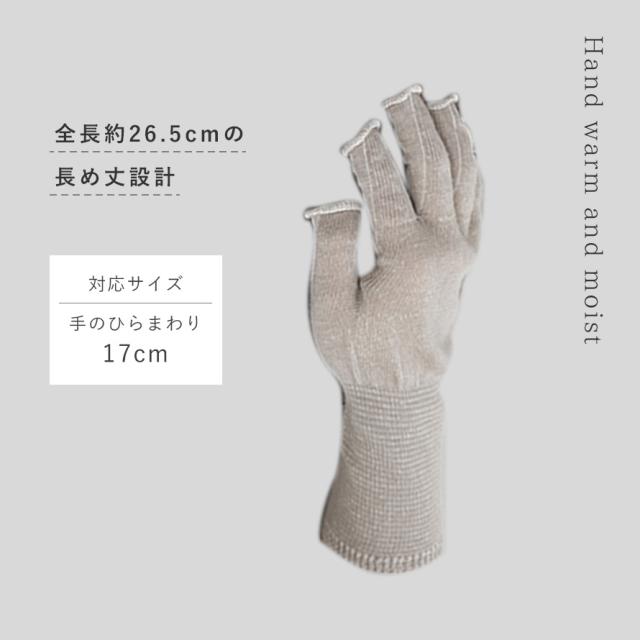 全長約26.5cmの長め丈設計なので、冷気を感じやすい手首まわりまでしっかり覆います。