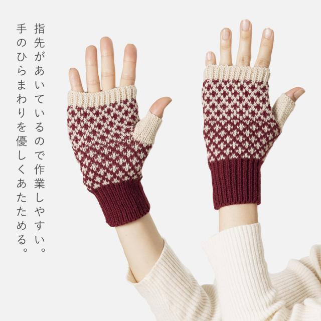 指先があいているので作業しやすく、手のひらまわりを優しくあたためます。