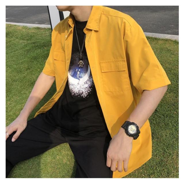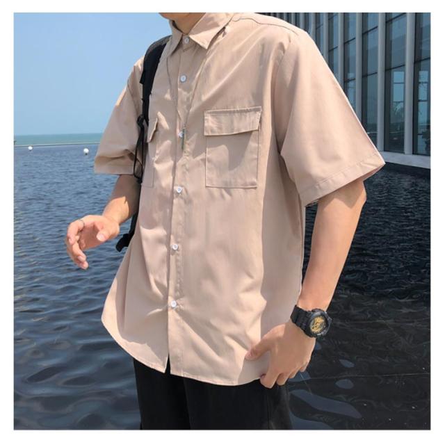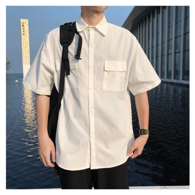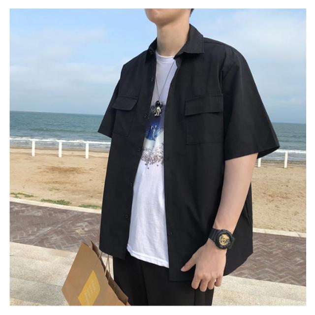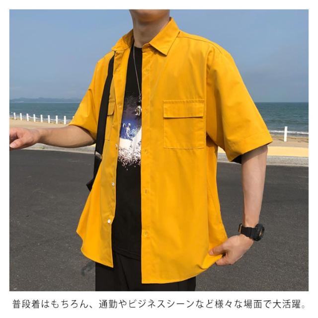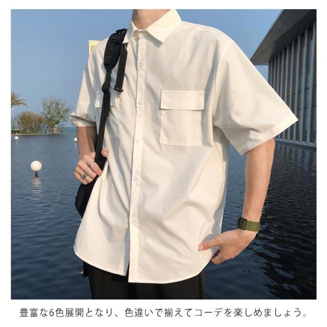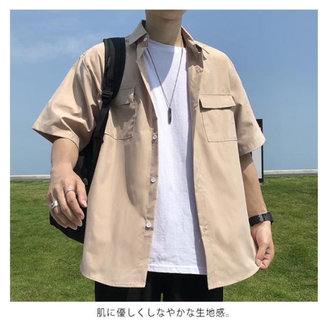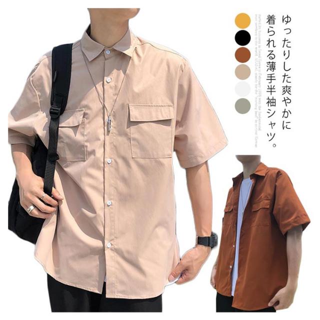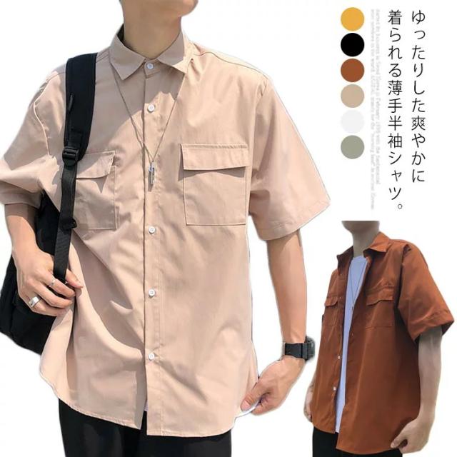 シャツ 半袖 メンズ カジュアルシャツ 無地シャツ オーバーサイズ ゆるシャツ 薄手 シャツアウター 大きいサイズ ゆったり 着回せる お洒落 カジュアル 重ね着 トップス 半袖シャツ 春服 夏服