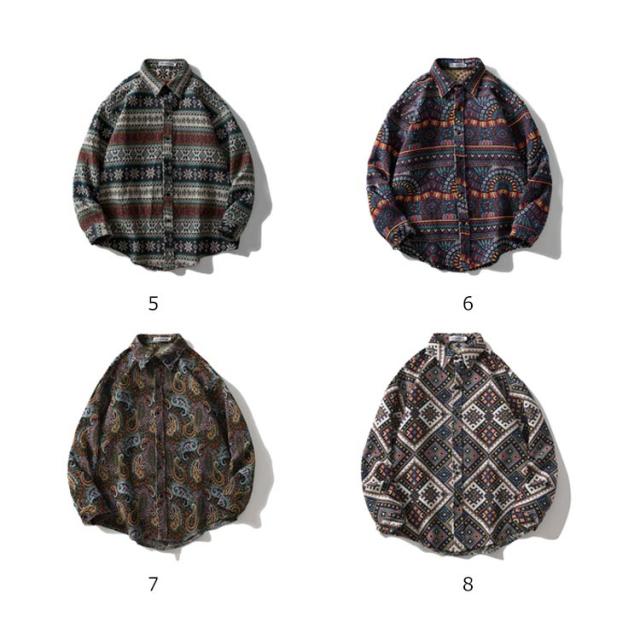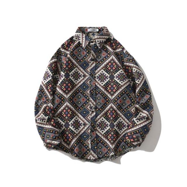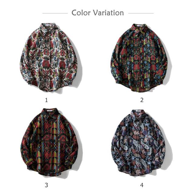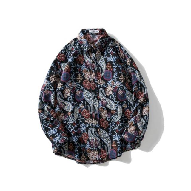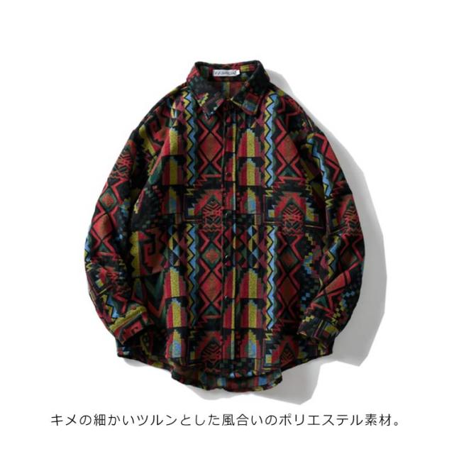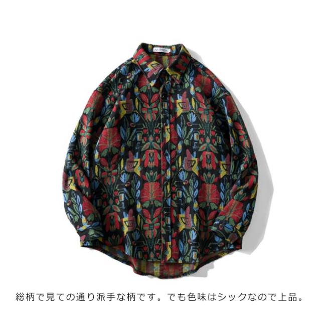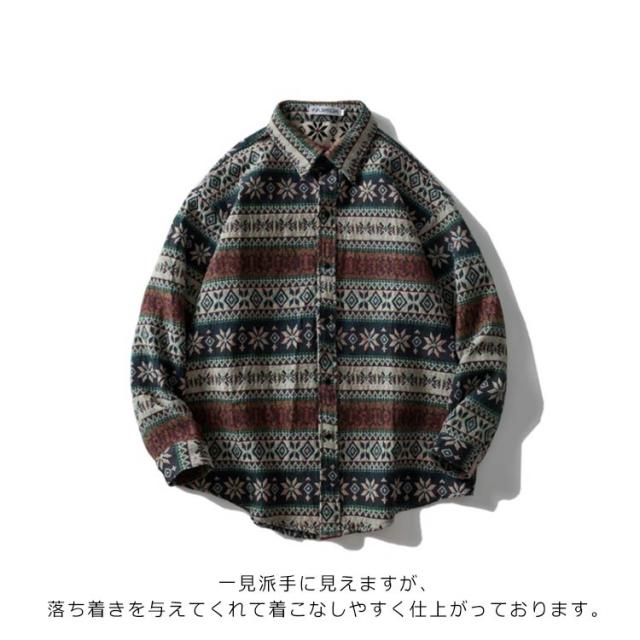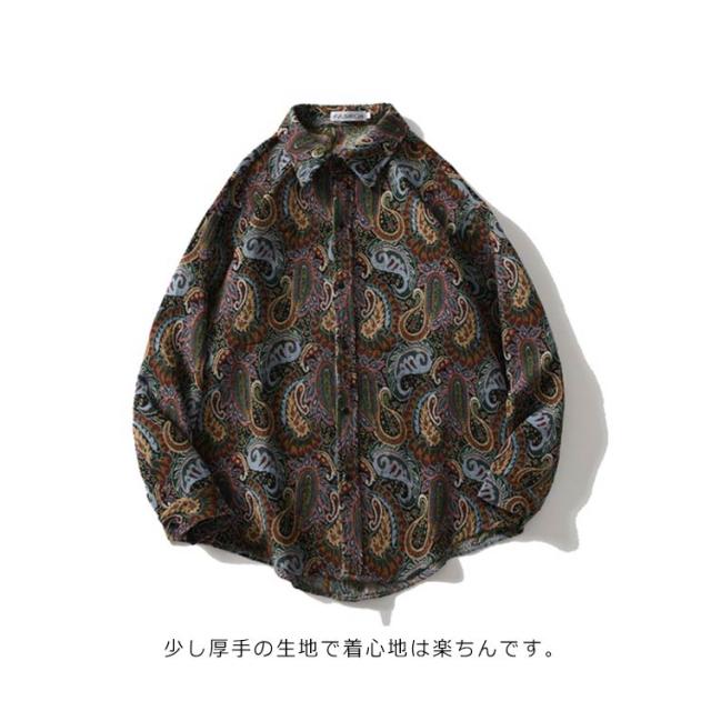 長袖シャツ カジュアルシャツ メンズ 厚手 春秋 冬 派手 総柄 長袖 シャツ バンダナ柄 ペイズリー柄 派手柄 エスニック アメカジ エレガント カジュアル クラシカル