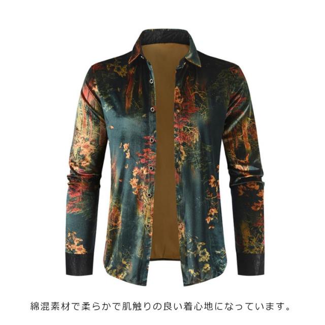 シャツ メンズ 長袖 総柄シャツ 花柄シャツ フラワーシャツ 柄シャツ 前開き ボタンダウンシャツ 長袖 アロハシャツ カジュアルシャツ 長袖シャツ 春秋 冬 暖かい トップス オラオラ系 キレイめ 細身 サーフ系 秋冬 冬物