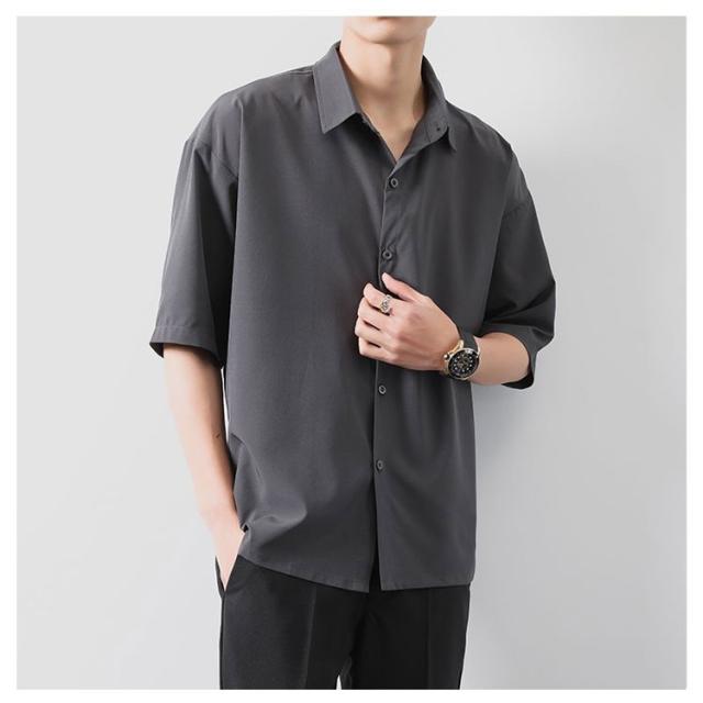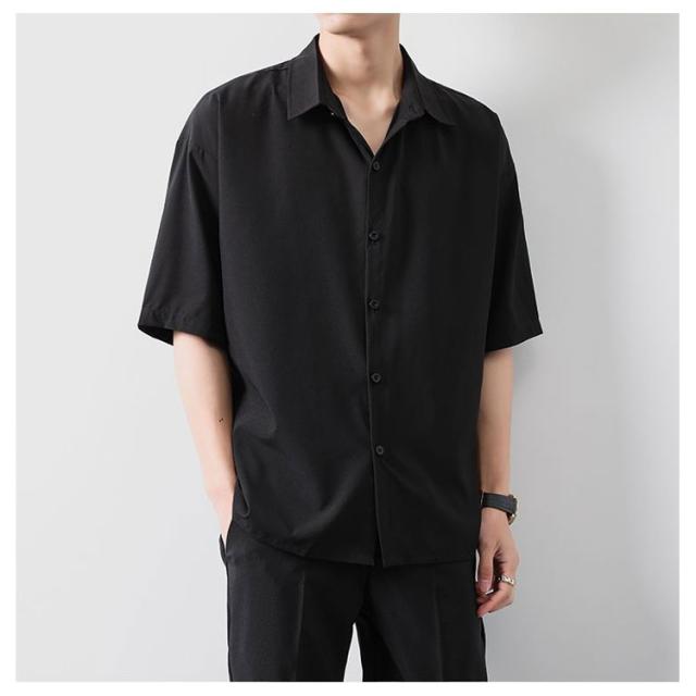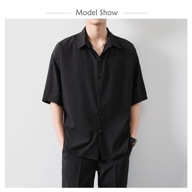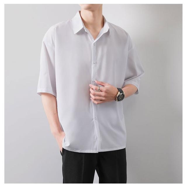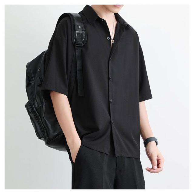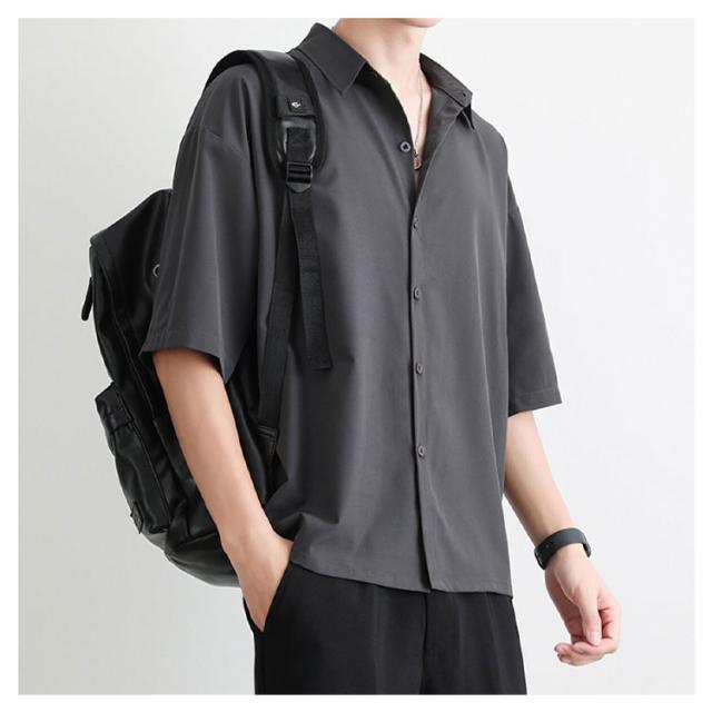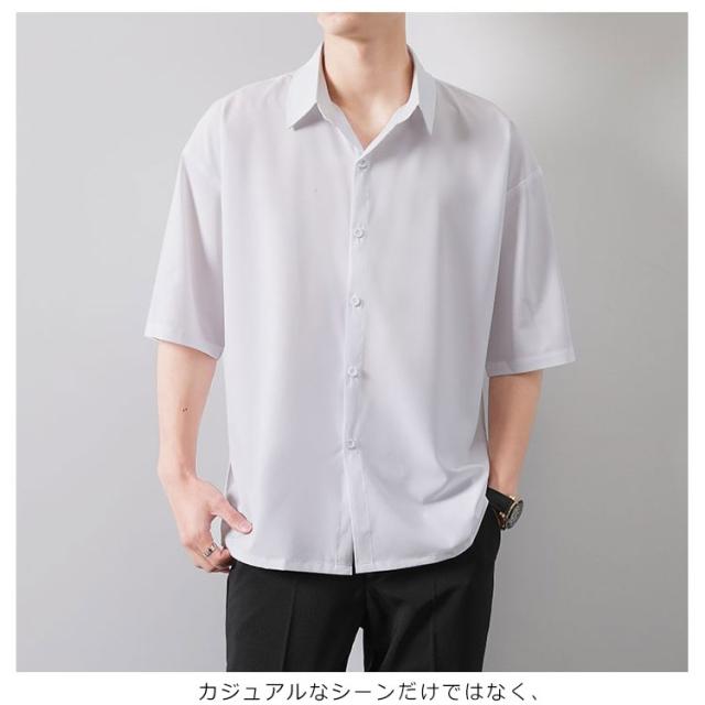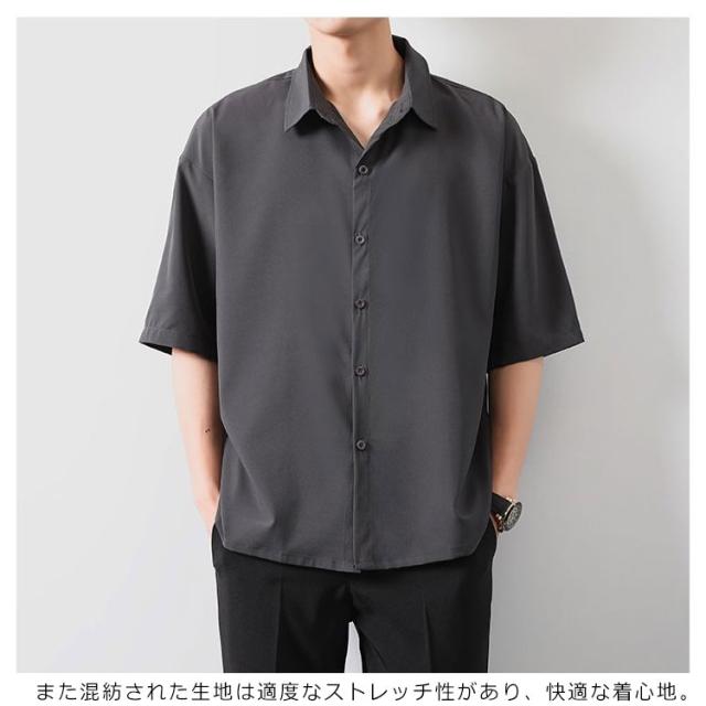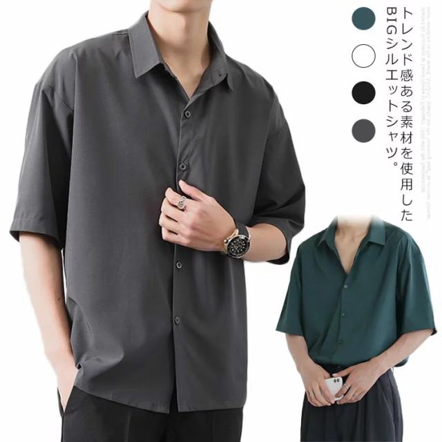 BIGシャツ 半袖 シャツ メンズ ドルマン シャツ ビッグシルエット オーバーサイズ ビッグシャツ 半袖 無地 ロング 韓国 ファッション モード系 ストリート系