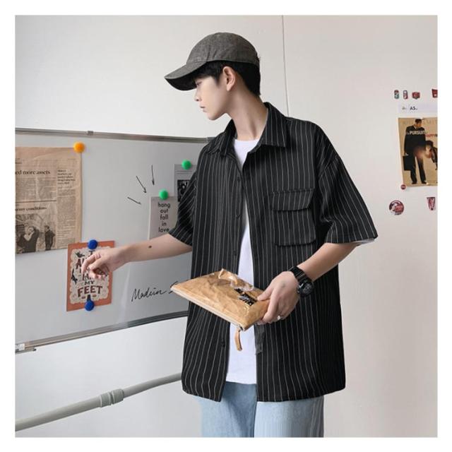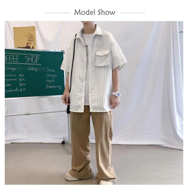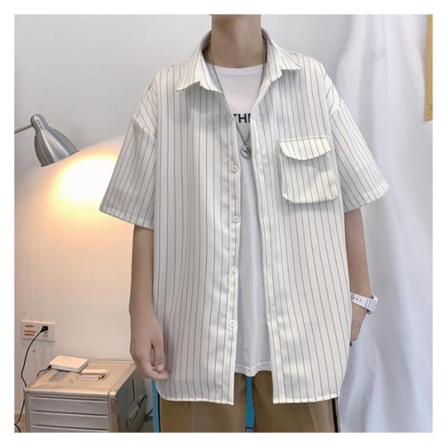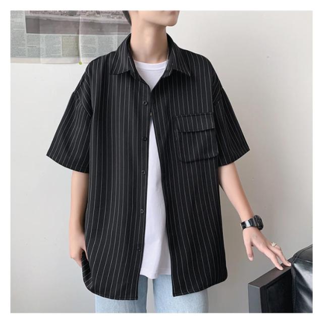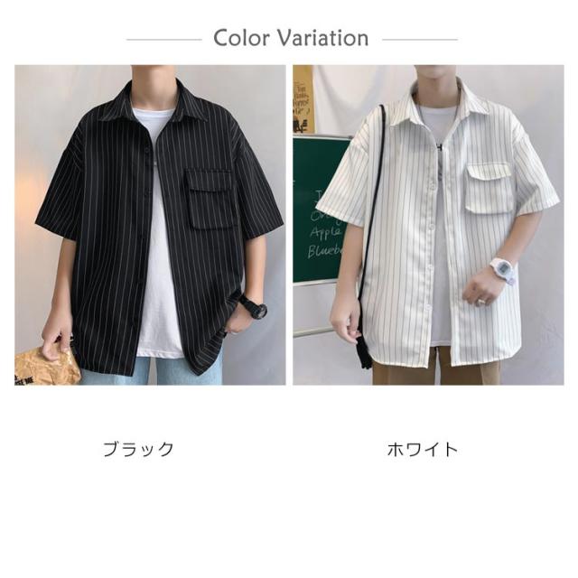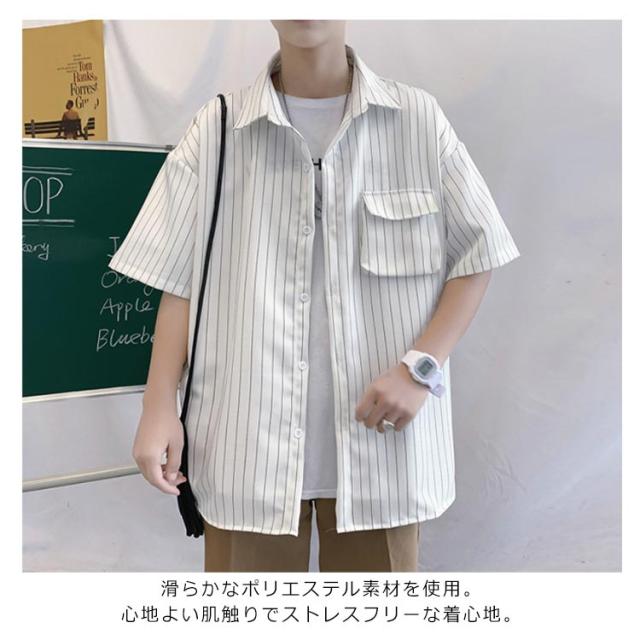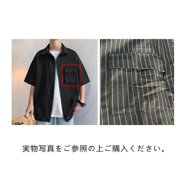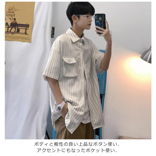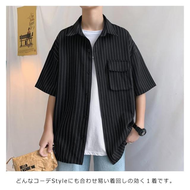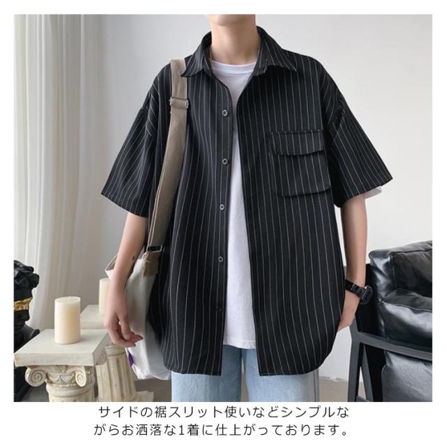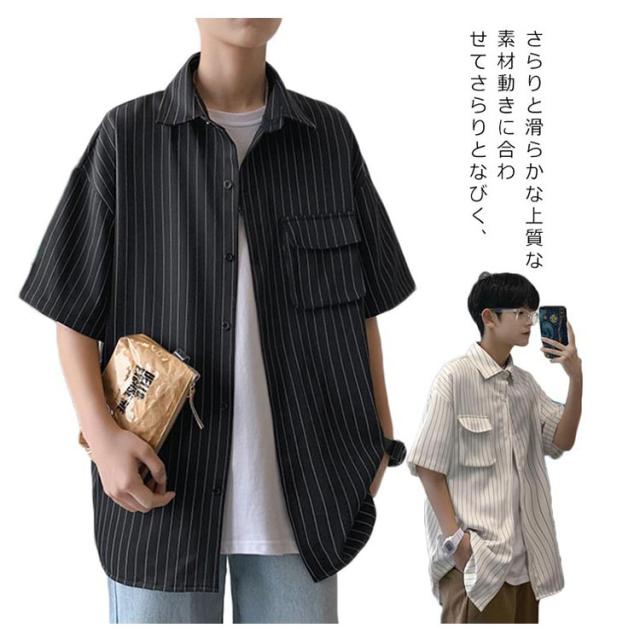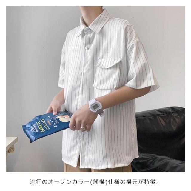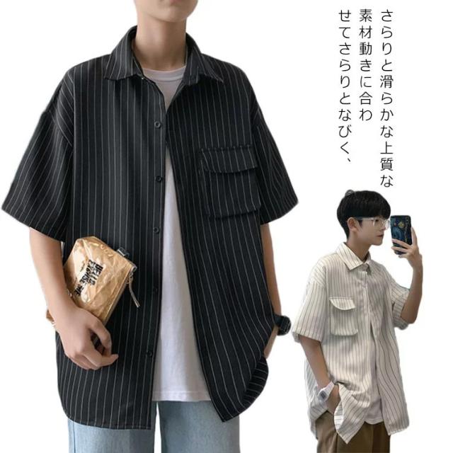 シャツ メンズ 夏 半袖 ストライプ柄 無地 開襟シャツ シンプル ビッグシャツ ワイドシャツ ビッグ ワイド メンズ カジュアル ストリート 韓国ファッション