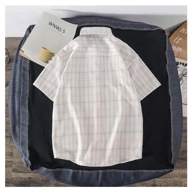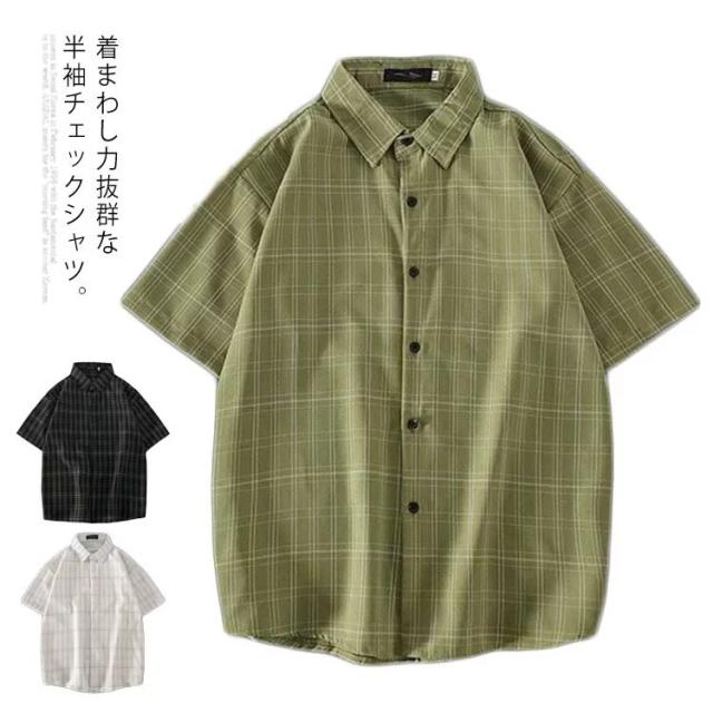 シャツ チェックシャツ メンズ 半袖シャツ カジュアルシャツ 半袖 グレンチェック トップス 薄手 ゆったり ゆるシャツ 前開き 折り襟 体型カバー お洒落 カジュアル リラックス 学生 通勤 お出かけ ストリート系 アウトドア系 アメカジ 春夏