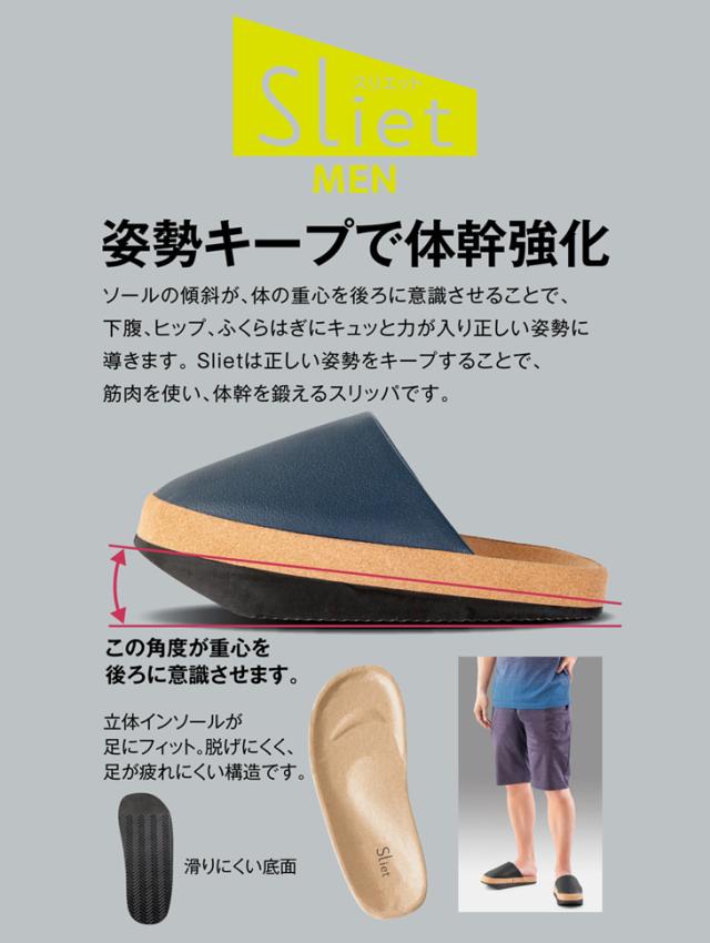 体幹 トレーニング 鍛える 体幹を整えるスリッパ Sliet スリエット MEN メンズ 男性 体幹立ち 健康 サンダル 室内履き 姿勢 アキレス腱 伸ばす 伸びる