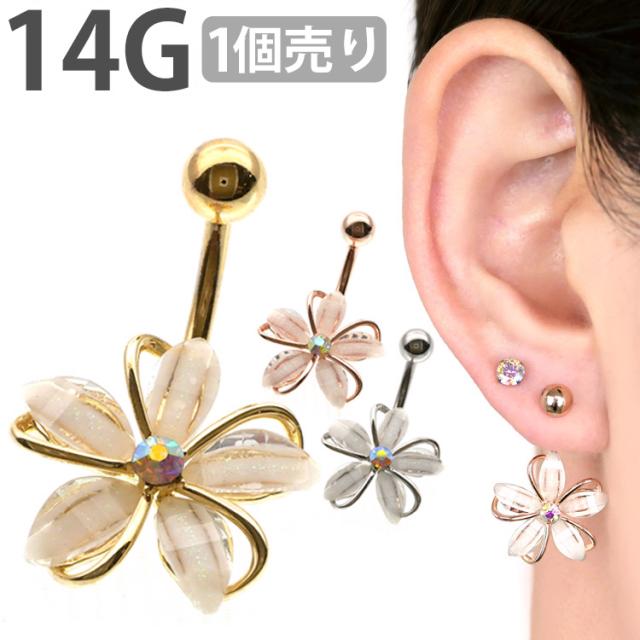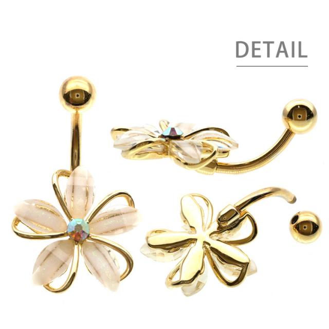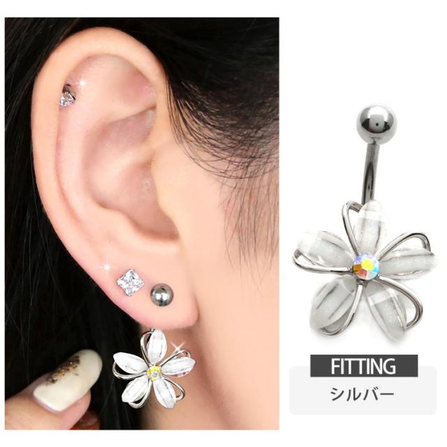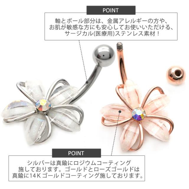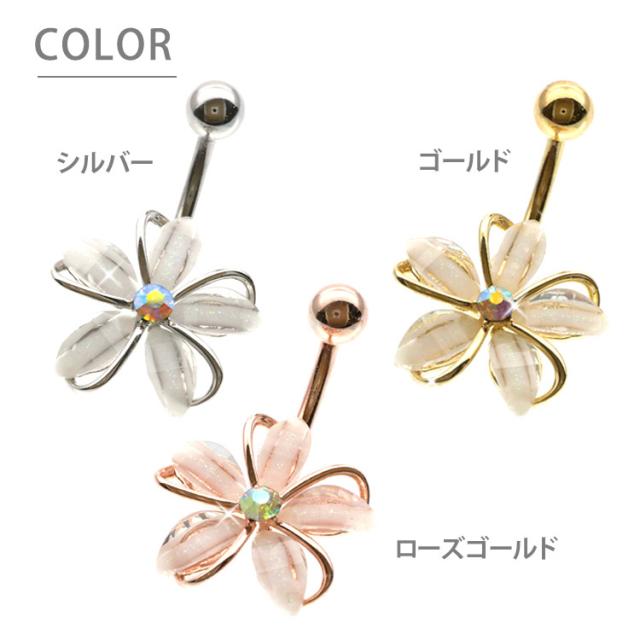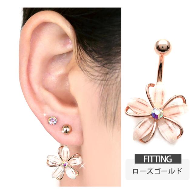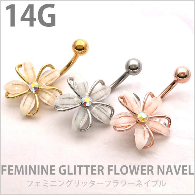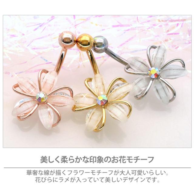 ボディピアス へそピアス 14G お花モチーフのフェミニングリッターフラワーネイブル ヘソピアス
