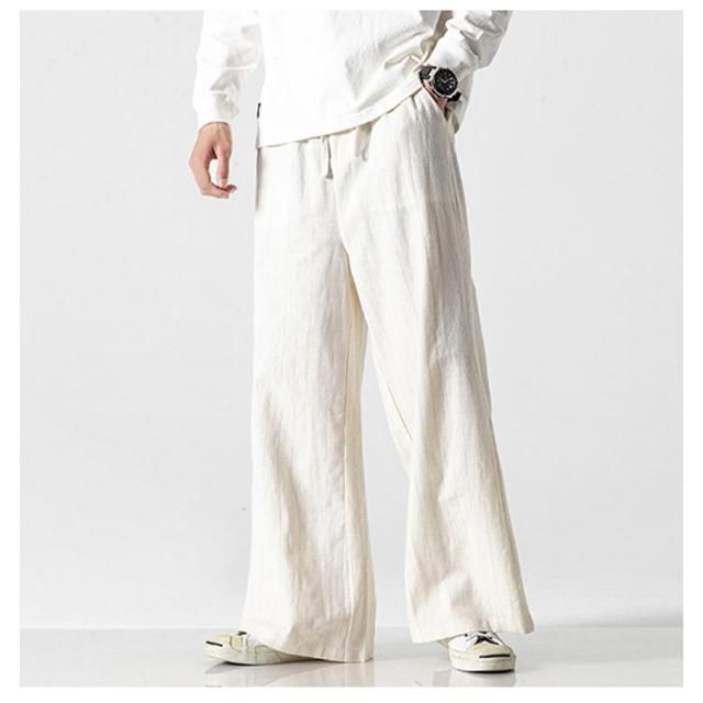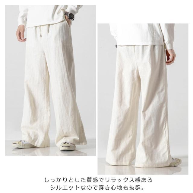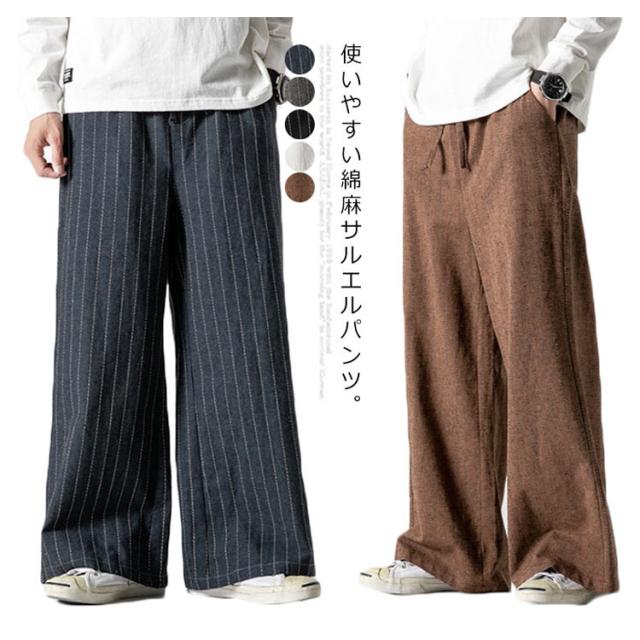 リネンパン ロングパンツ メンズ 綿麻 春夏秋 サルエルパンツ バギーパンツ ストレートパンツ ルームウエア シルエット ゆったり ユニセックス