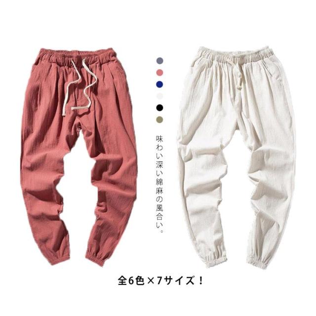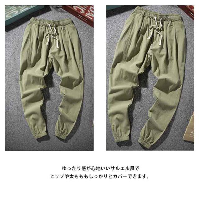 全6色×7サイズ!リネンパンツ サルエルパンツ メンズ 麻ズボン リネン ロングパンツ ジョガーパンツ 夏用 ズボン カジュアルパンツ 無地 涼しい 大きいサイズ ゆったり 新作 大きサイズ 夏