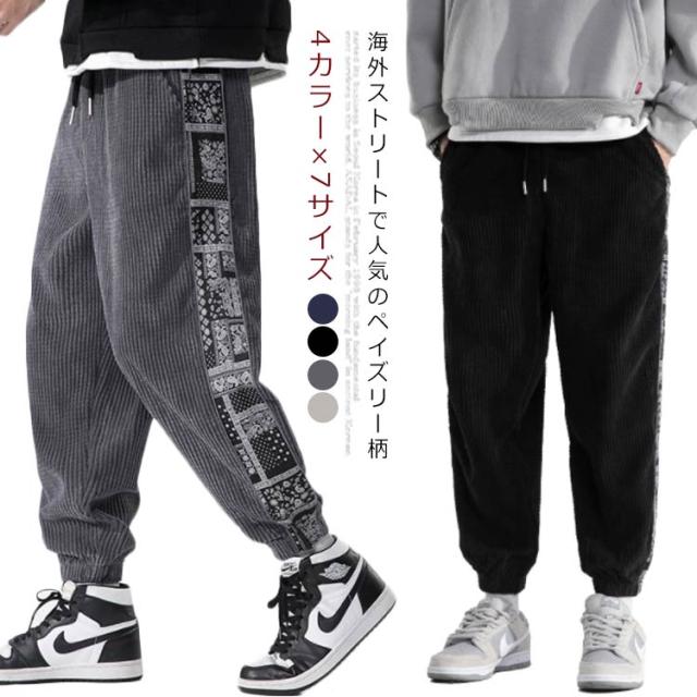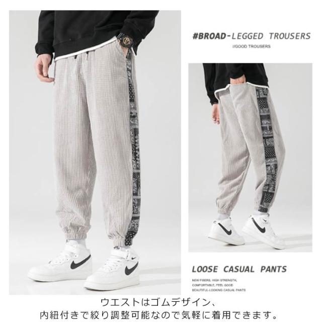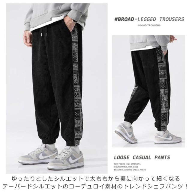 テーパードパンツ メンズ 厚地 サルエルパンツ コーデュロイパンツ チノパン ワイドパンツ イージーパンツ 防寒 秋冬 オシャレ シンプル スウェット ボトムス ズボン ゆったり 無地 ルーズ カジュアルパンツ 秋冬