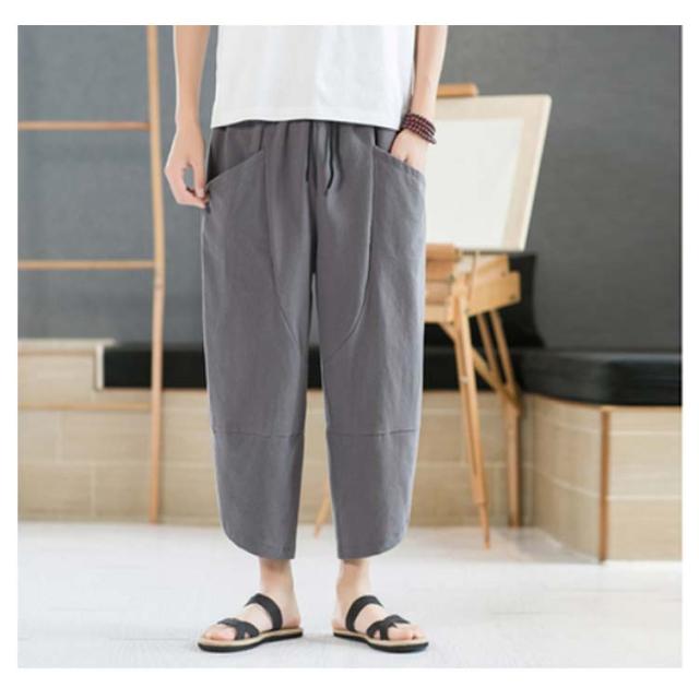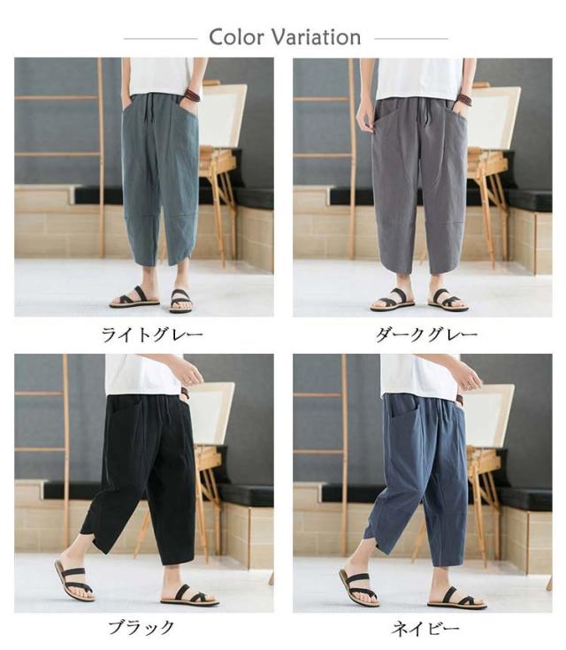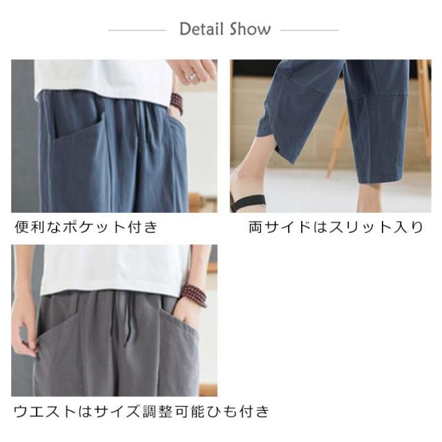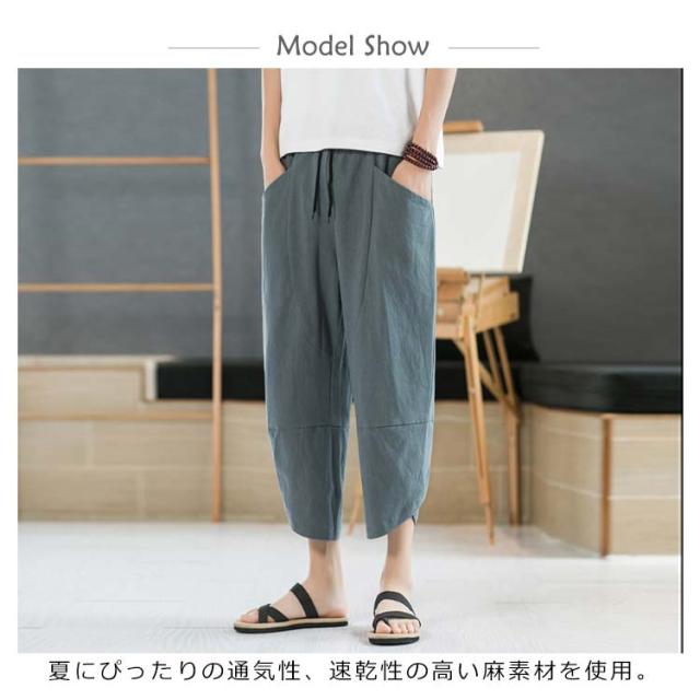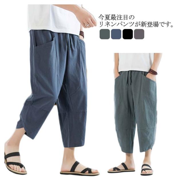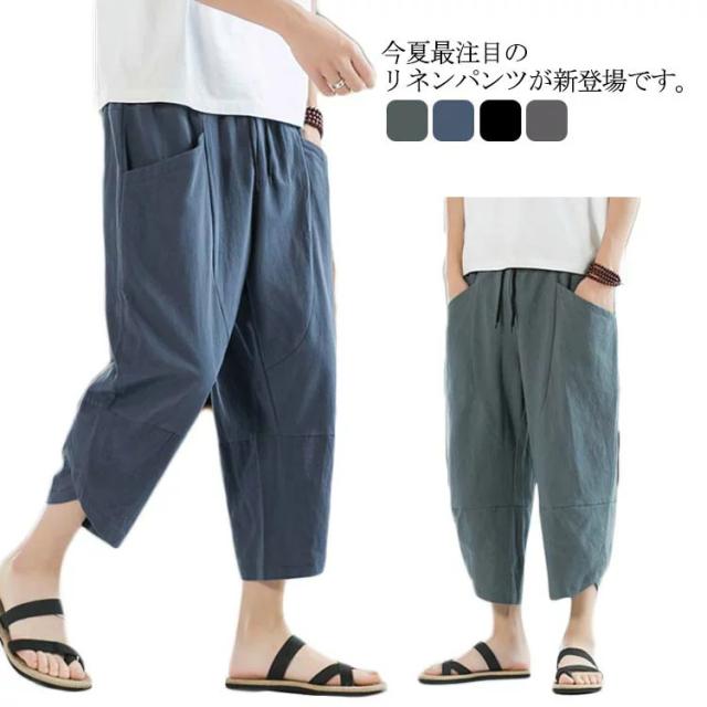 リネンパンツ 7分丈パンツ サルエルパンツ メンズ 綿麻 クロップドパンツ アンクル丈 ボトムス 無地 春夏 イージーパンツ カジュアルパンツ ハーフパンツ メンズ おしゃれ 新作