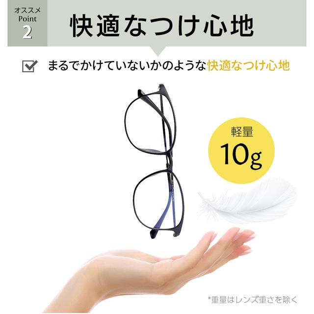| 【軽量 デザインフレーム】 | 毎日の生活を考えた軽量で快適なフレームデザイン。 長時間の使用でもノンストレスで快適に着用できます。 |