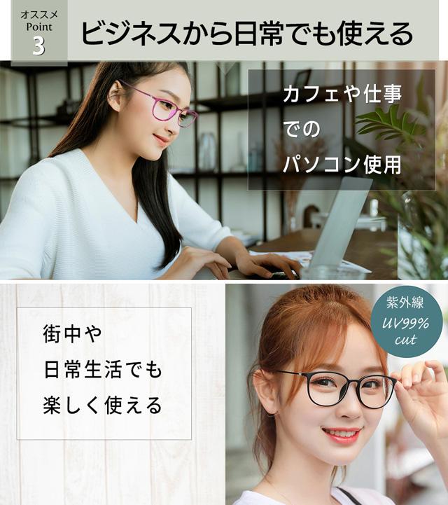 | 【高品質素材を採用】 | ・軽量/柔軟/調整しやすいフレーム素材を使用 ・傷がつきにくく自然な色合いのレンズ ・レビュー投稿で365日延長保証 |