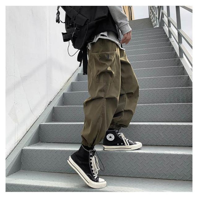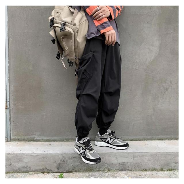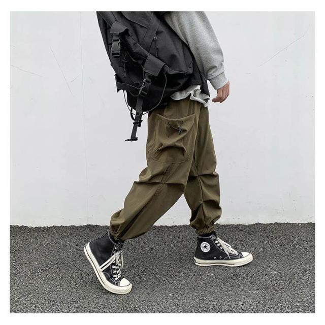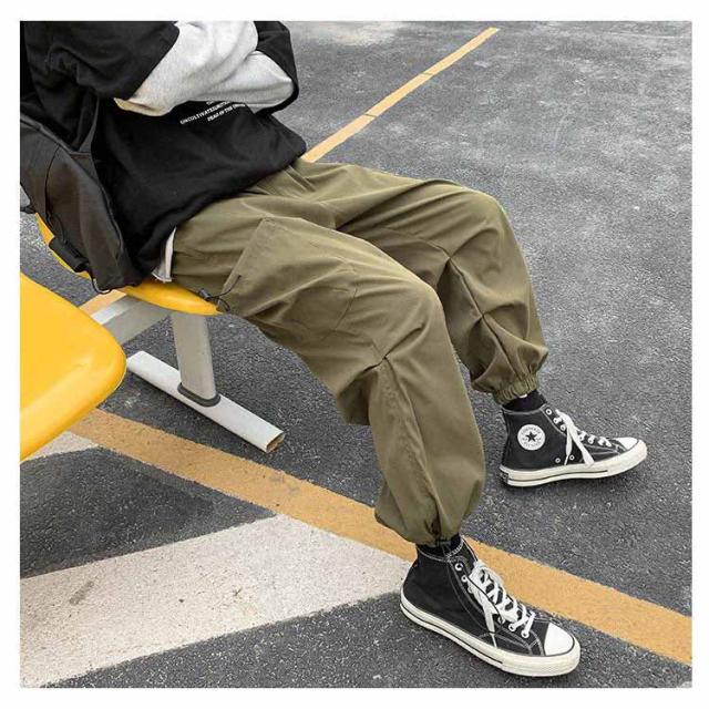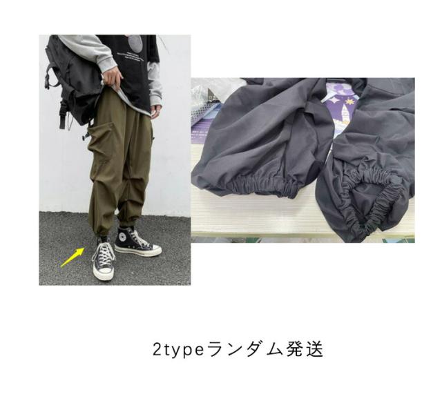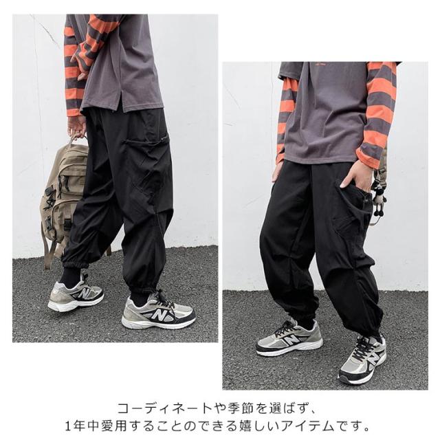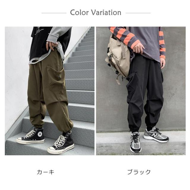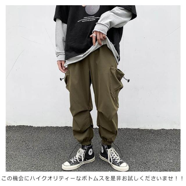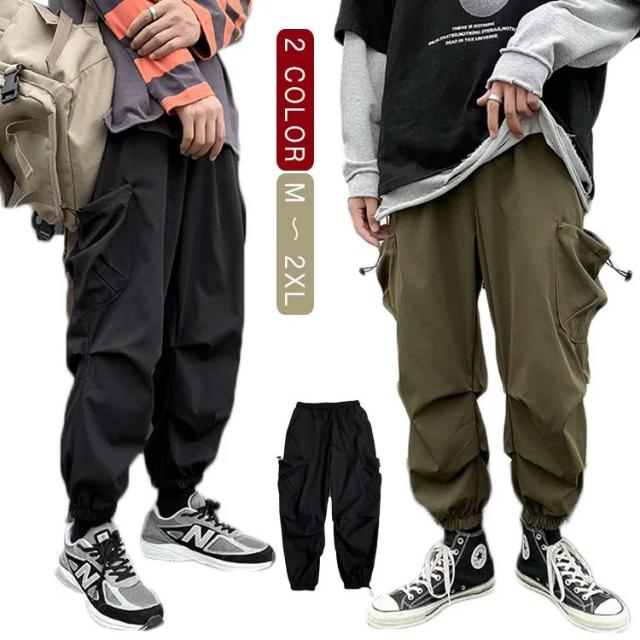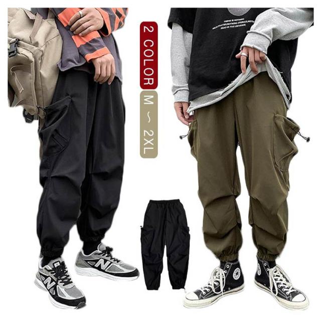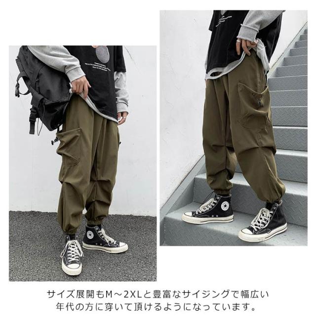 カーゴパンツ メンズ ゆったり 大きいサイズ 裾ゴム入り ジョガーパンツ 無地 黒 イージーパンツ テーパードパンツ 韓国ファッション 無地