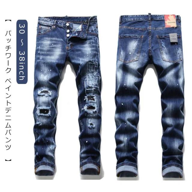 デニムパンツ メンズ ジーンズ JEANS jeans blue Gパン gパン パンツ ボトムス ストレッチ リペア スキニーデニムパンツ ペンキ ダメージ クラッシュ ヴィンテージブルー スキニーデニム テーパード アンクルデニム リペア 細身 伸縮