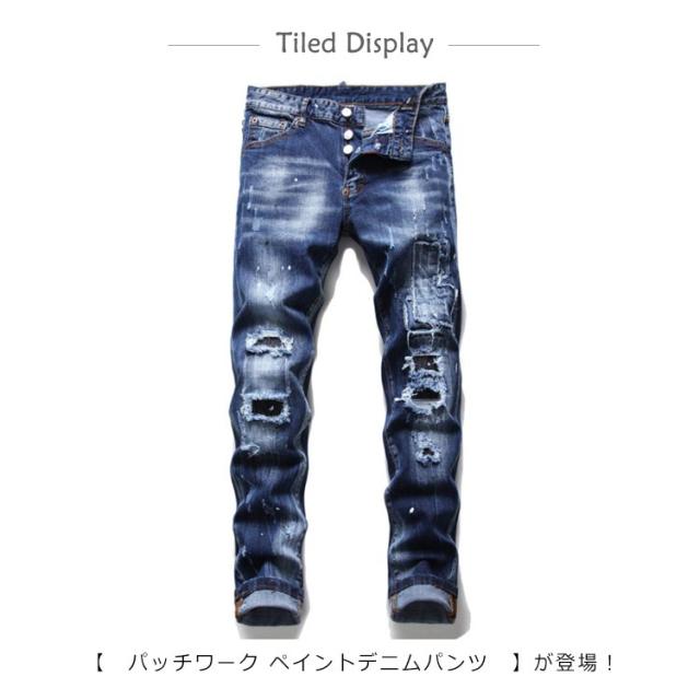 | 【 パッチワーク ペイントデニムパンツ 】が登場! 太ももから膝にかけてのブリーチ感や パッチワークデザイン に加え様々な ペイント加工 が施されていて周囲の視線を独り占め! ストレッチもしっかり効いていてピタっとした履き心地は◎ デニム特有の色の濃淡でデザインしたクラッシュパンツは着こなしに旬な雰囲気をプラス! すっきり スリムタイト なデザインですが、全体的に ストレッチ が効いております。 スリムタイトなデザインなので、 また長年穿きこんだような味のある絶妙にペンキ加工を施し、届いたその日からワンランク上の ペイントデニム メンズコーデ を演出してくれます! | |