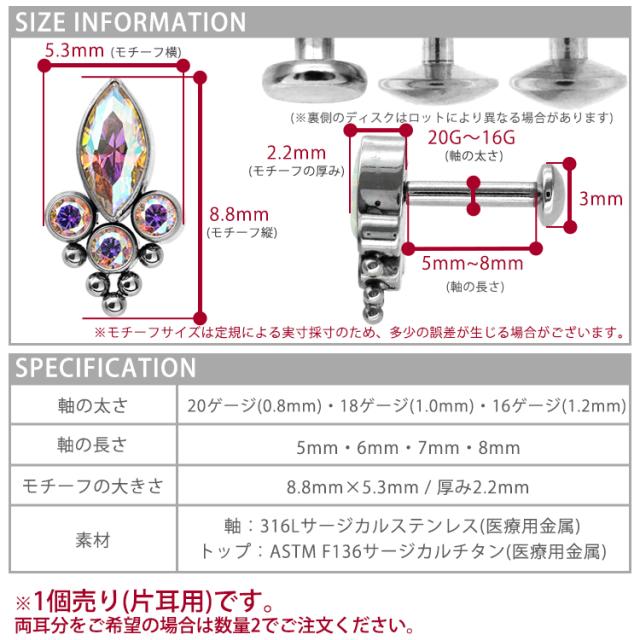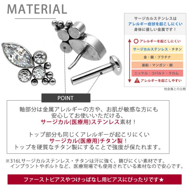 ピアス 20G 18G 16G つけっぱなしにおすすめ マーキーズストーン&ジュエルクラスタープッシュピンラブレット 片耳用 ファーストピアス セカンドピアス ボディピアス 華奢 片耳用