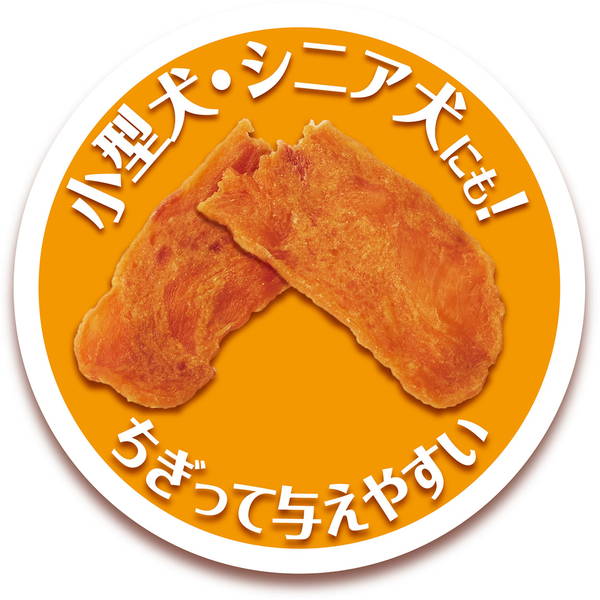良質たん白質豊富な鶏ササミを味わい豊かに仕上げました。小さくちぎりやすいので、小型犬・シニア犬にも与えやすい!着色料・発色剤・香料無添加