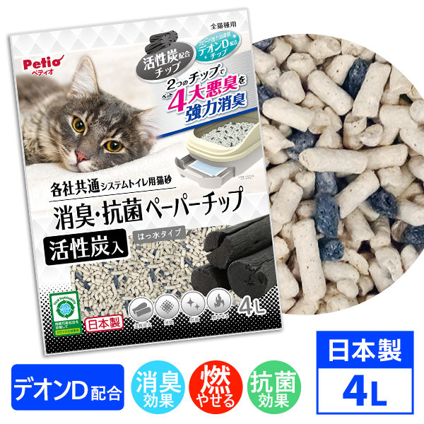 ペティオ 各社共通 システムトイレ用猫砂 消臭 抗菌ペーパーチップ活性炭入 4L 猫砂 Petio
