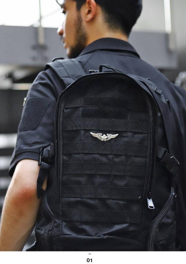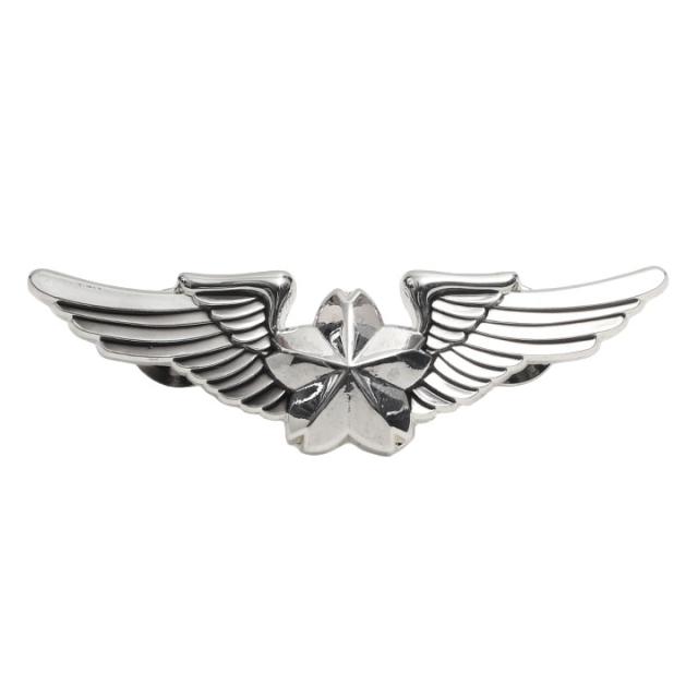 本商品は、航空自衛隊の技能き章(資格)のひとつで、防衛大臣が指定する講習を修了するとともに、自衛隊における航空士の正規教育課程を修了すれば付与を受け、着用できる銀色の「航空(航空士)徽章/機上整備員徽章」を題材としたオリジナル商品です。