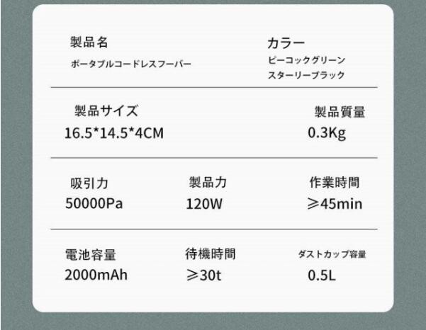 掃除機 コードレス ハンディクリーナー 充電式 強力吸引 15000Pa 低騒音 小型 軽量300g 携帯型 家庭用 車載用 乾湿両用