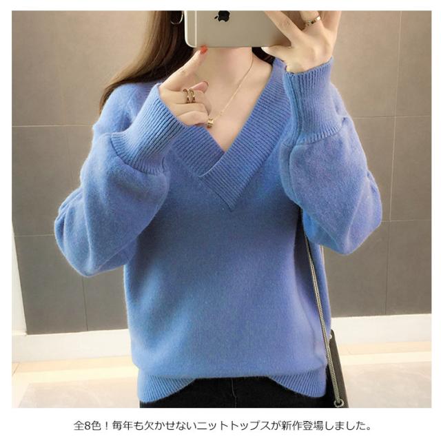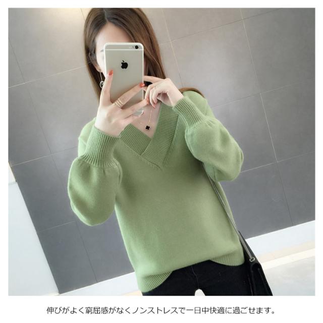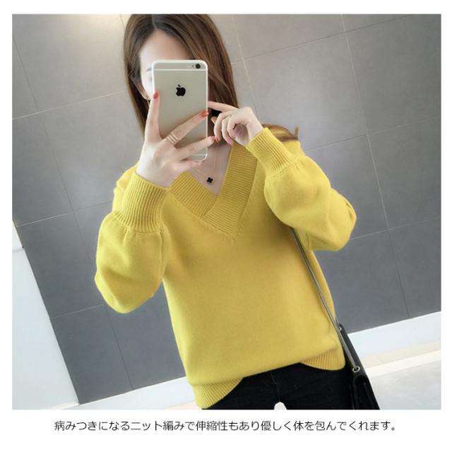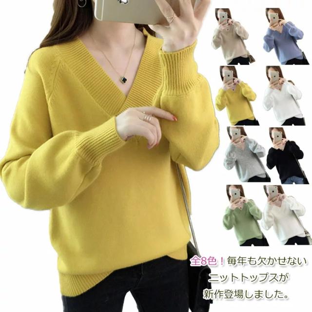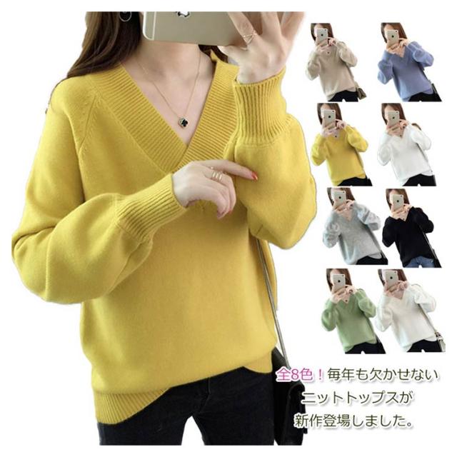 全9色!ニットセーター Vネック レディースニット Vネック ニットトップス ニット トップス プルオーバー シンプル 無地 春 秋 冬 ゆったり 長袖 おしゃれ カジュアル キレイめ