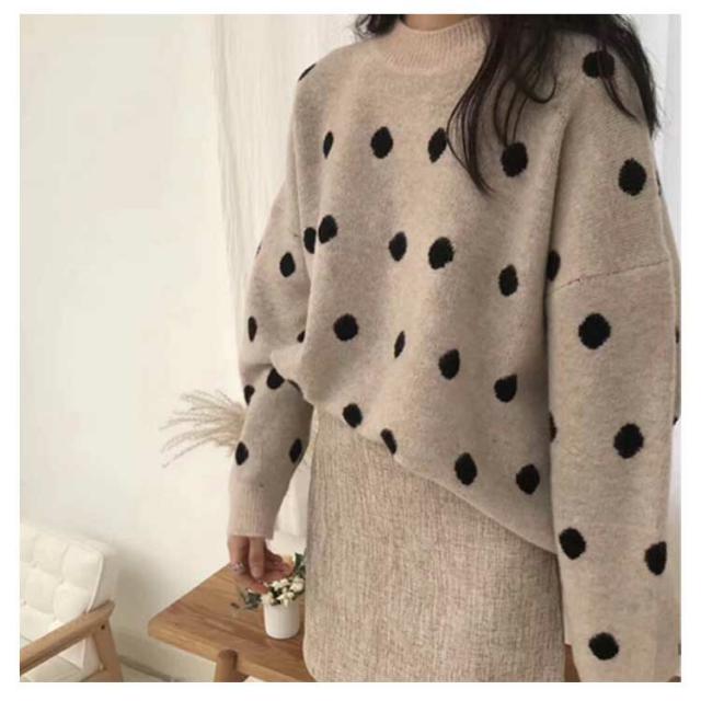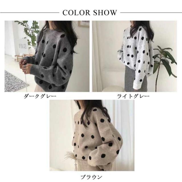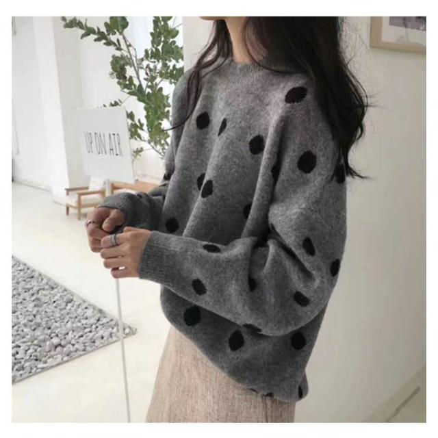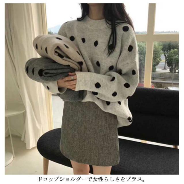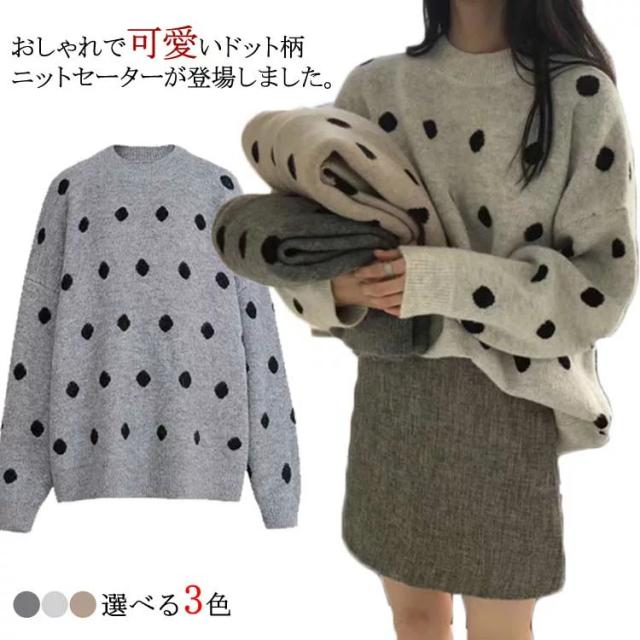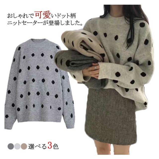 ドット柄ニットセーター レディース ニット セーター ドット柄 ドットセーター ニットトップス プルオーバー ドロップショルダー ロングスリーブ ゆったり 可愛い 秋 冬 秋冬