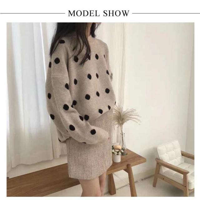 | おしゃれで可愛いドット柄ニットセーターが登場しました。 微笑みで満ちる優しい水玉模様が子供っぽくすぎず、とっても可愛い一着。 今年らしいゆったりシルエットでリラックス感ある着心地に。 ドロップショルダーで女性らしさをプラス。 ふんわりと柔らかなニットでチクチクしなく、快適なよい気持ちになります。 パンツでもスカート合わせでもバランスよくコーデが決まります。 | |