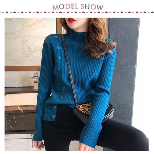 | 6色展開!飾りボタン付きのニットセーター。 品質良い柔らかな編地を採用、着心地と防寒性が良く。 少し高めの襟は首をしっかり守ってくれます。 裾スリット入り仕様、お洒落感をアップ。 ジャケットやコート等と合わせやすい1枚です。 | |