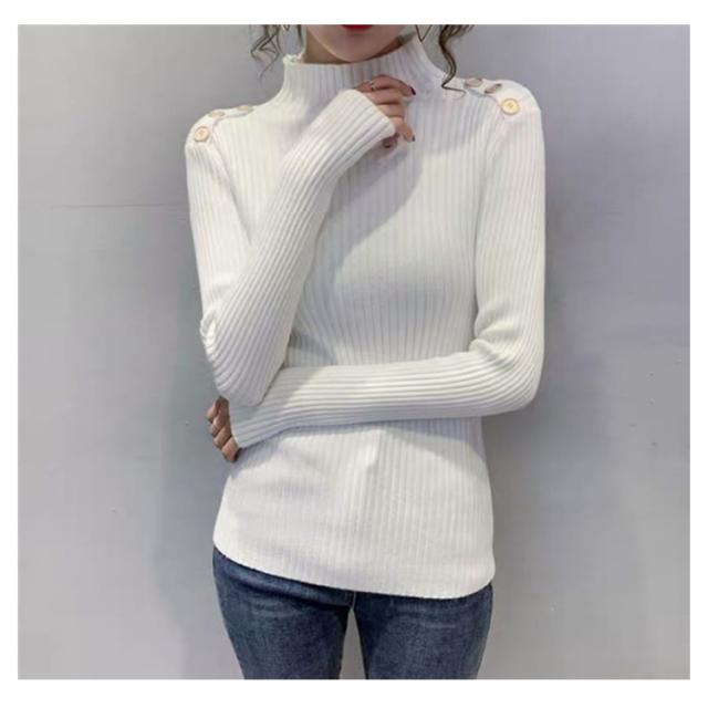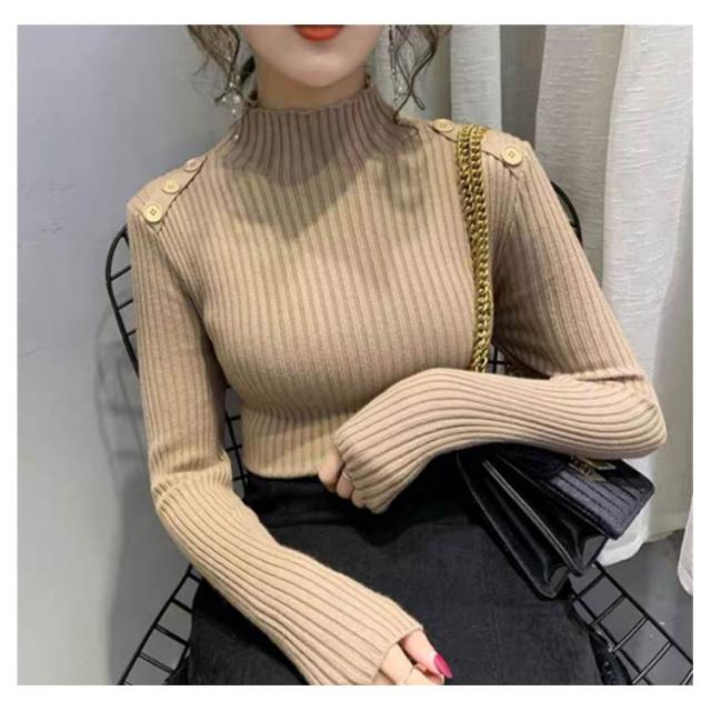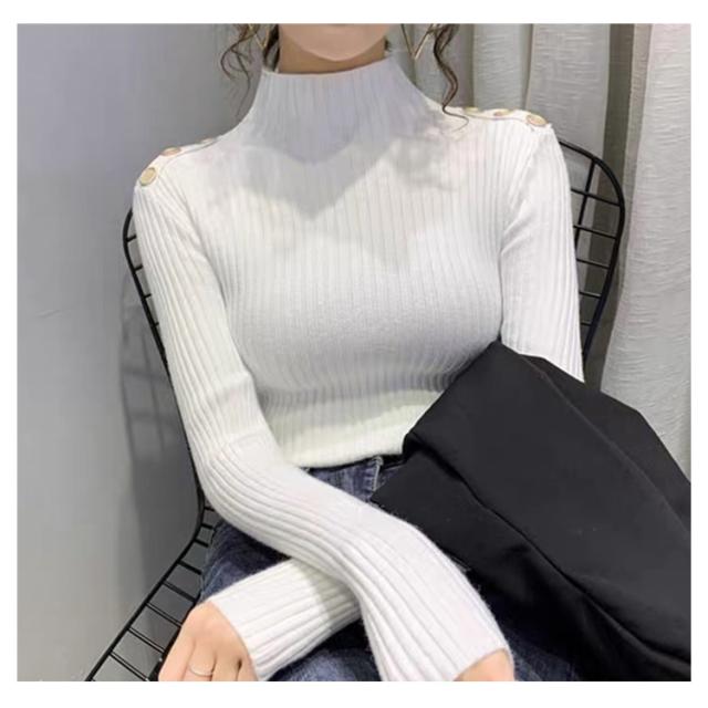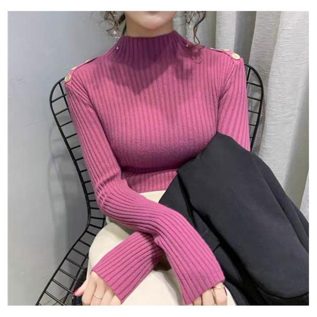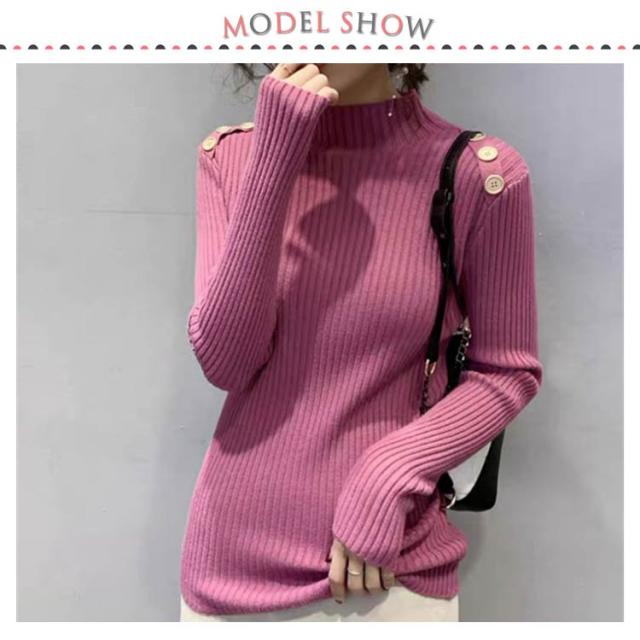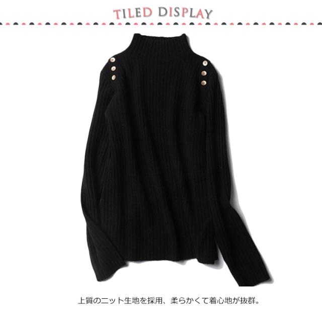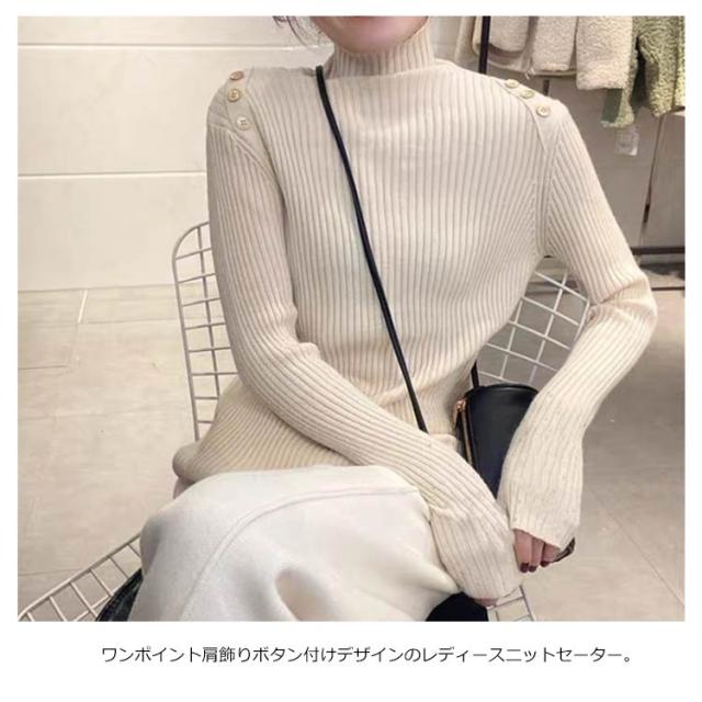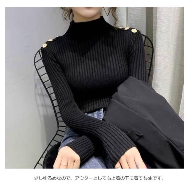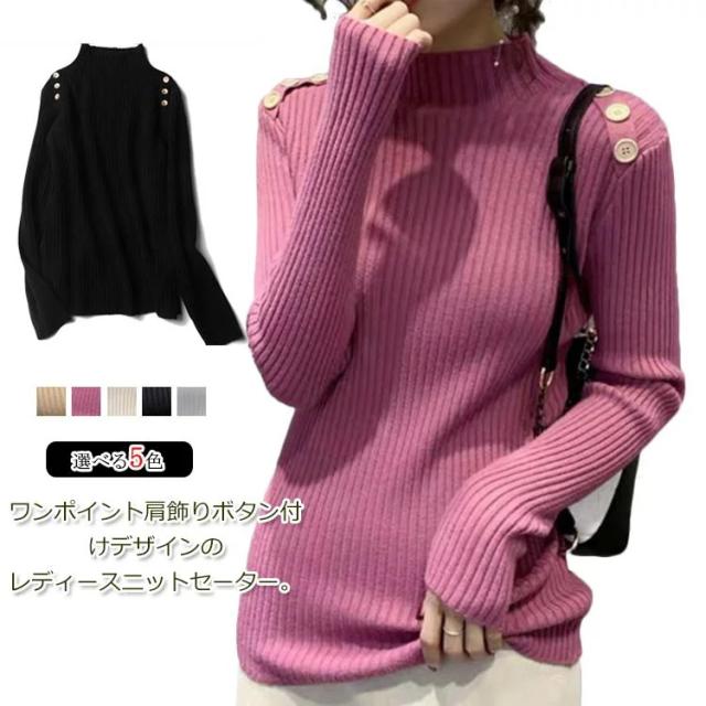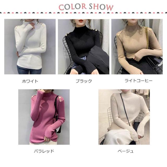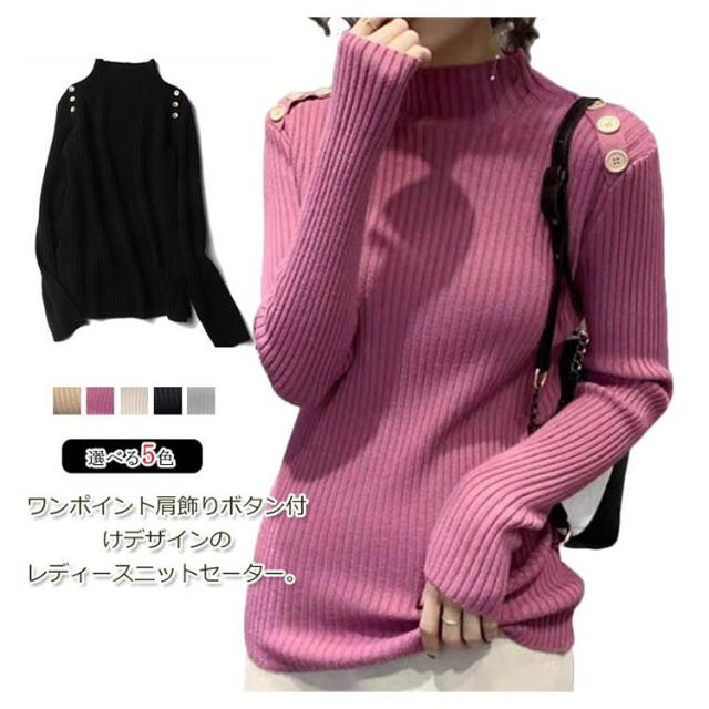 5色展開!ニットトップス レディース ニットセーター 秋冬 ニットソー 長袖セーター 無地 飾りボタン インナーニット ハイネック 大人 通勤 着痩せ 上品