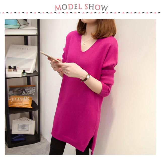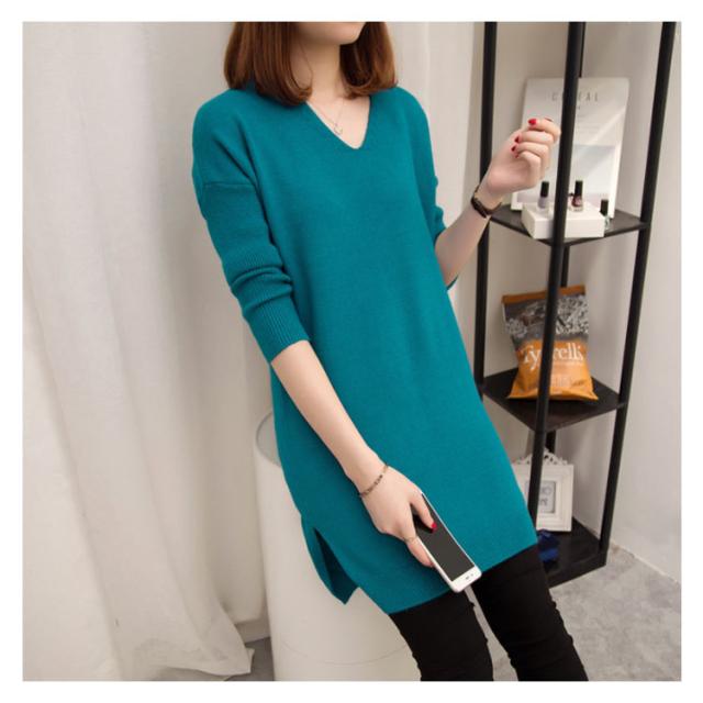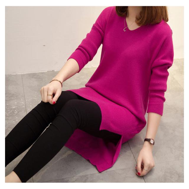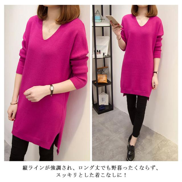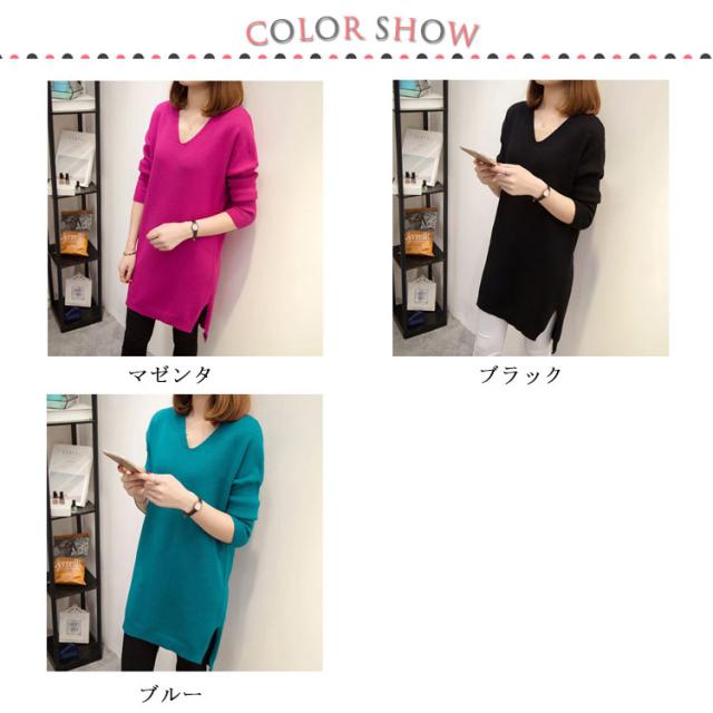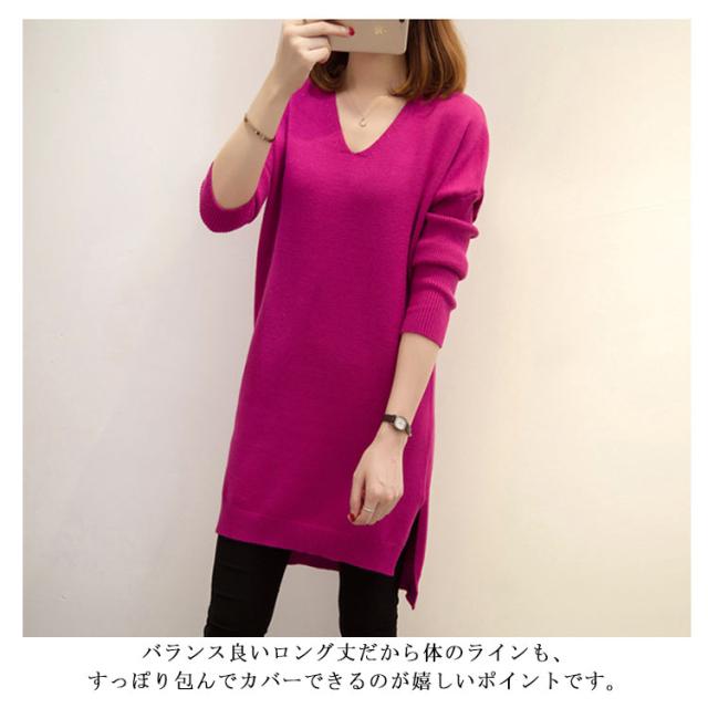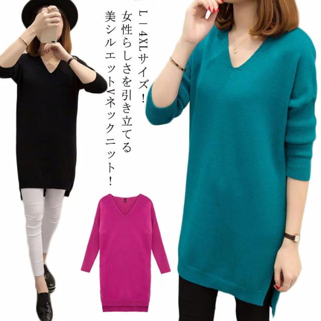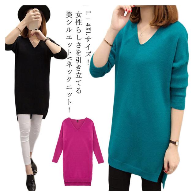L−4XLサイズ!スリット入り ロングニット ニットソー レディース チュニックニット Vネック ニットトップス ロング丈 大きサイズ 体型カバー ゆったり 長袖 秋冬 新作